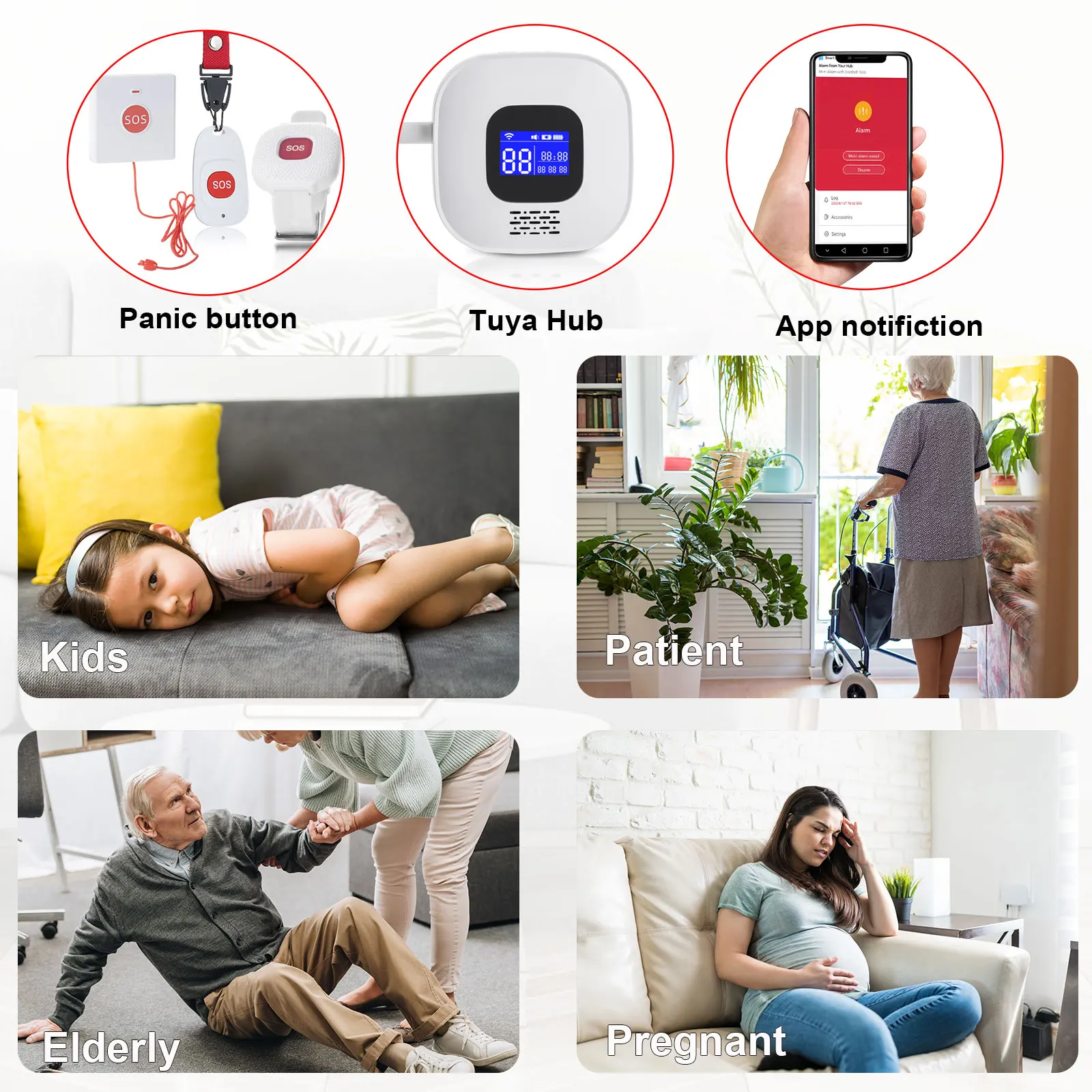 - Function: Tuya Panic Button Wi-Fi Emergency Call Button for Seniorsor Elderly RF 433mhz SOS Bracelet Caregiver Pager