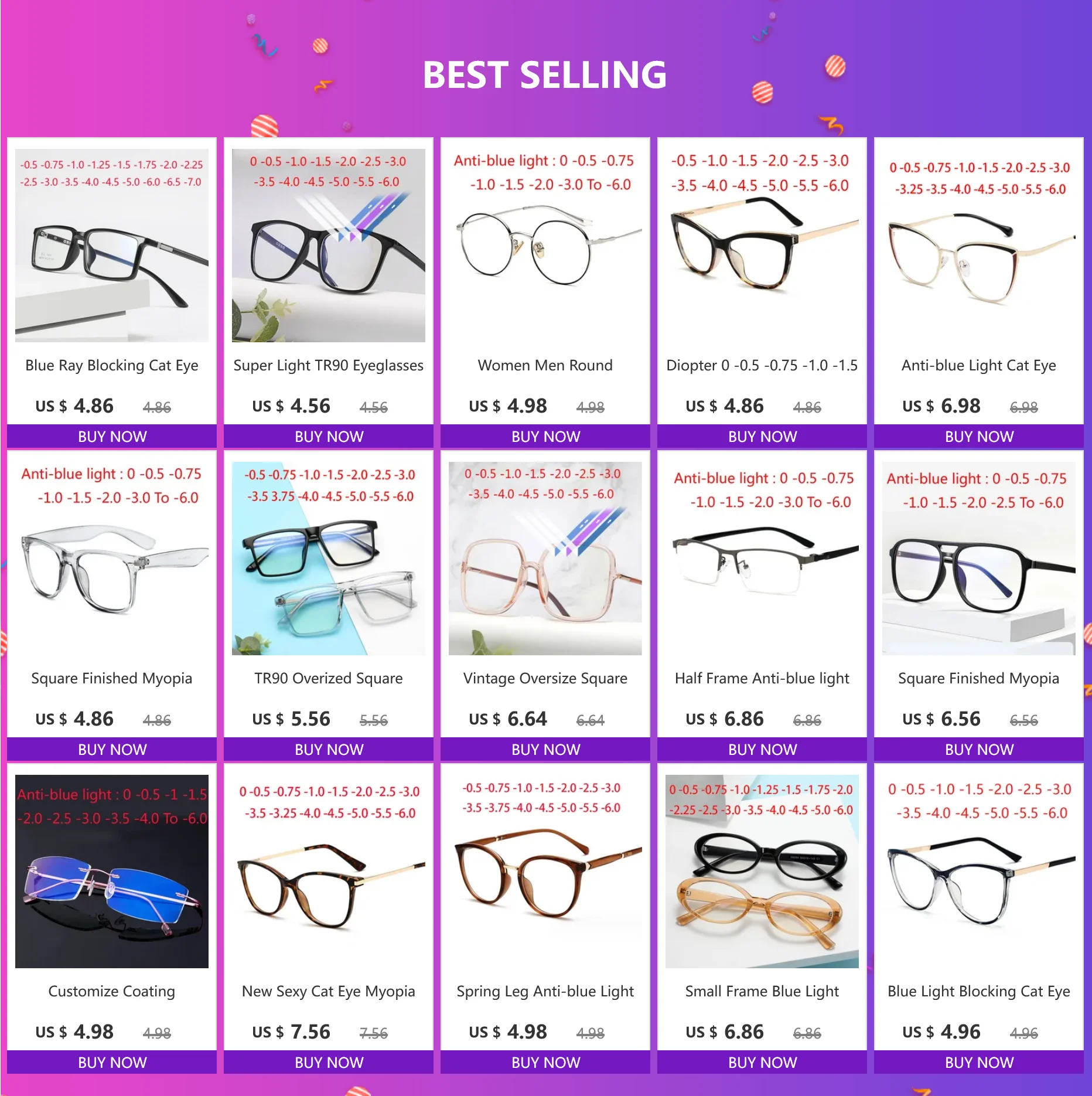 TR1168 Retro Oval Frame Glasses Prescription Near Sighted Blue Light Blocking High-Quality TR90