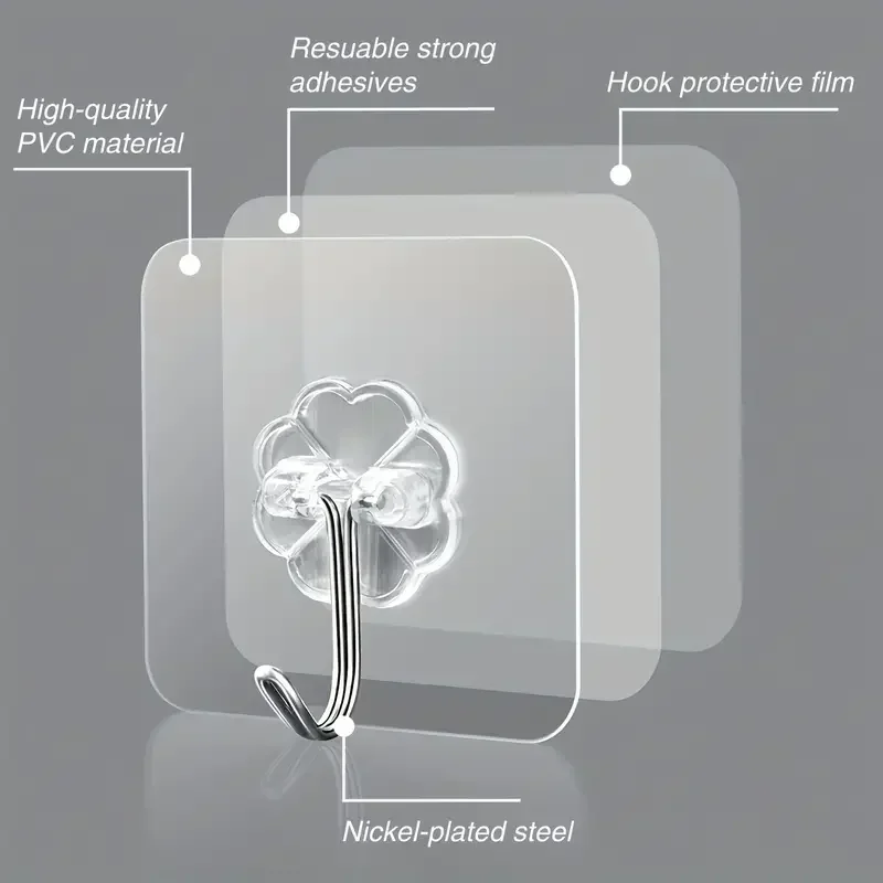 - Feature 3: Transparent Self Adhesive Wall Hooks