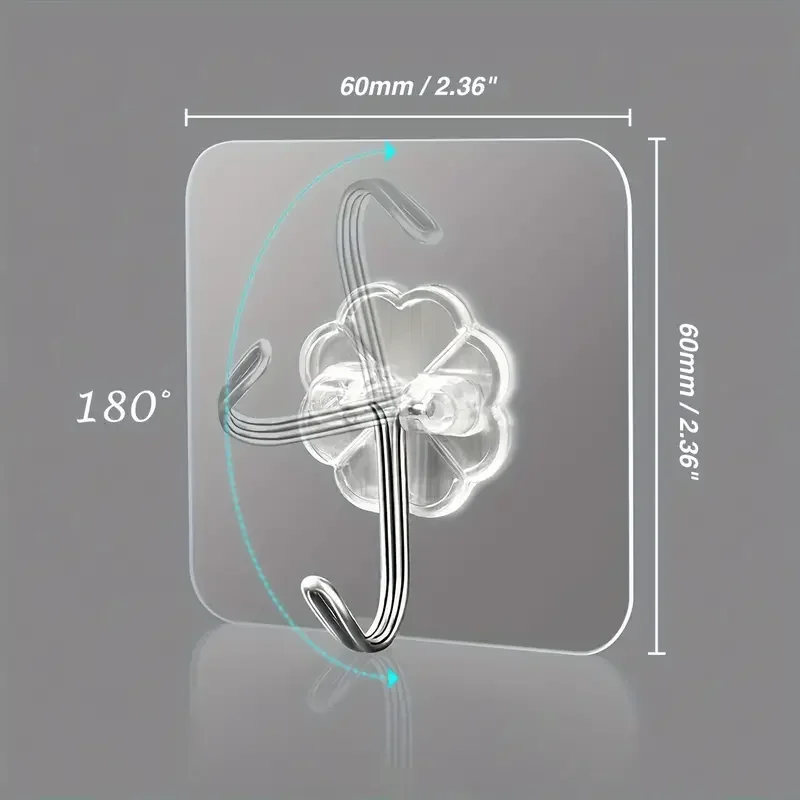 Material: PVC + MetalnAdhesion Method: ViscosenDesign and Style: Classic Transparent AestheticsnUsage and Purpose: Versatile for Kitchen, Bathroom, and Home OrganizationnShape and Size: Compact 6*6cm DesigPerformance and Property: Heavy Duty and Strong Adhesive Capability Versatile and Stylish Organization The Transparent Self Adhesive Wall Hooks are an indispensable addition to any home, offering a sleek and modern solution for organizing and decluttering your space. These hooks are not just about functionality; they are designed to complement your decor with their transparent aesthetics, blending seamlessly with any interior style. Whether you’re looking to hang towels, kitchen utensils, or keys, these hooks are up to the task, thanks to their robust PVC and metal construction. Effortless Installation and Strong Adhesion Installation is a breeze with the self-adhesive feature, allowing you to place these hooks on any smooth surface without the need for drilling or tools. The viscose adhesion method ensures a strong bond, capable of supporting items up to 5 pounds. The Classic Transparent Series is a testament to durability, withstanding the test of time and maintaining its hold over time. This self adhesive wall hook is a perfect solution for renters or anyone looking for a hassle-free, damage-free way to organize their space. Multi-Purpose and Adaptable These hooks are more than just a tool for hanging; they are a versatile accessory that can be used in various settings. Ideal for kitchen and bathroom accessories, they can hold everything from towels to utensils, keys to robes. Their compact size and lightweight design make them perfect for small spaces, while their strong adhesive ensures they stay put even in high-moisture environments. Whether you’re looking to optimize your kitchen, bathroom, or any other room in your home, these Transparent Self Adhesive Wall Hooks are the perfect solution for your organizational needs.