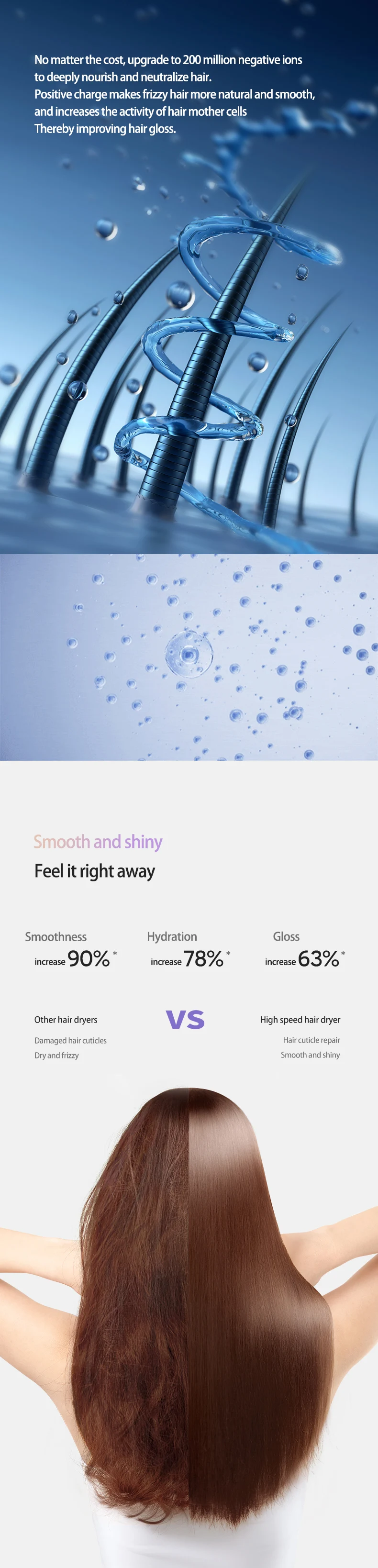 Travel Hair Dryer Professional Bladeless Ionic High-power Ion High-speed Cooling Heating Hair Drier Travel Blow Dryer