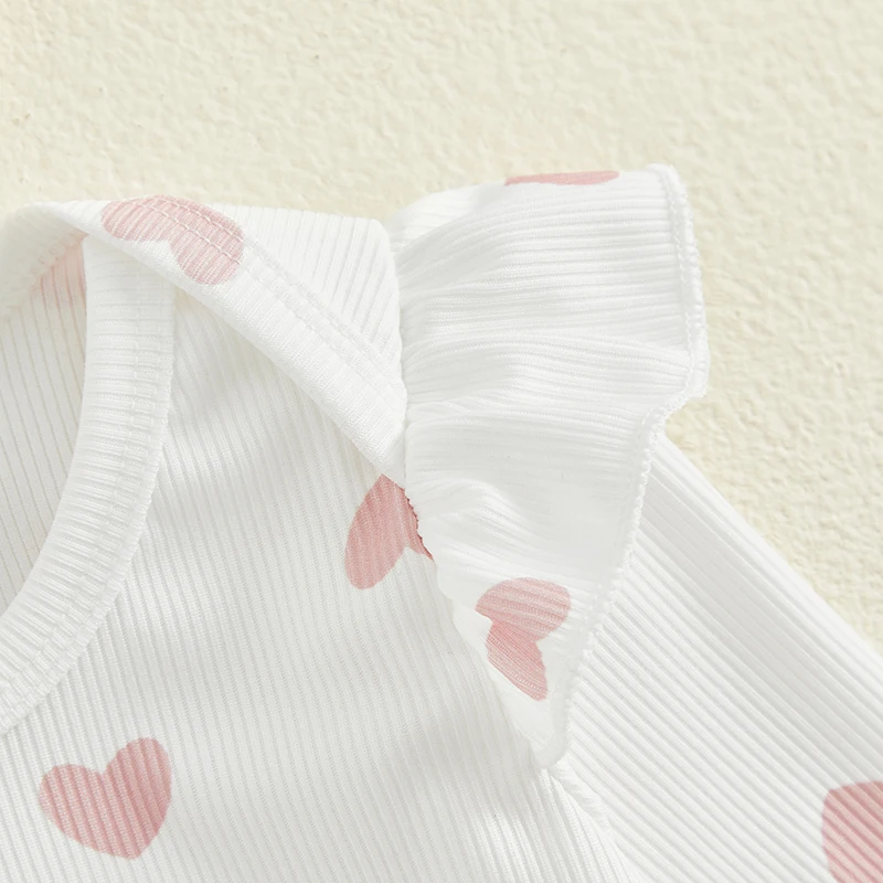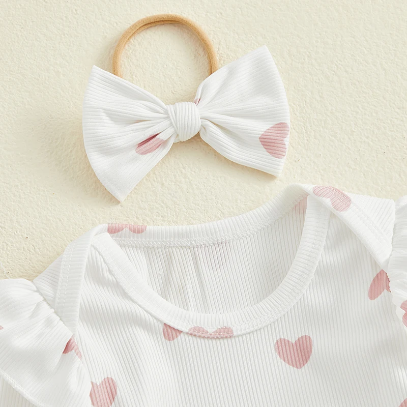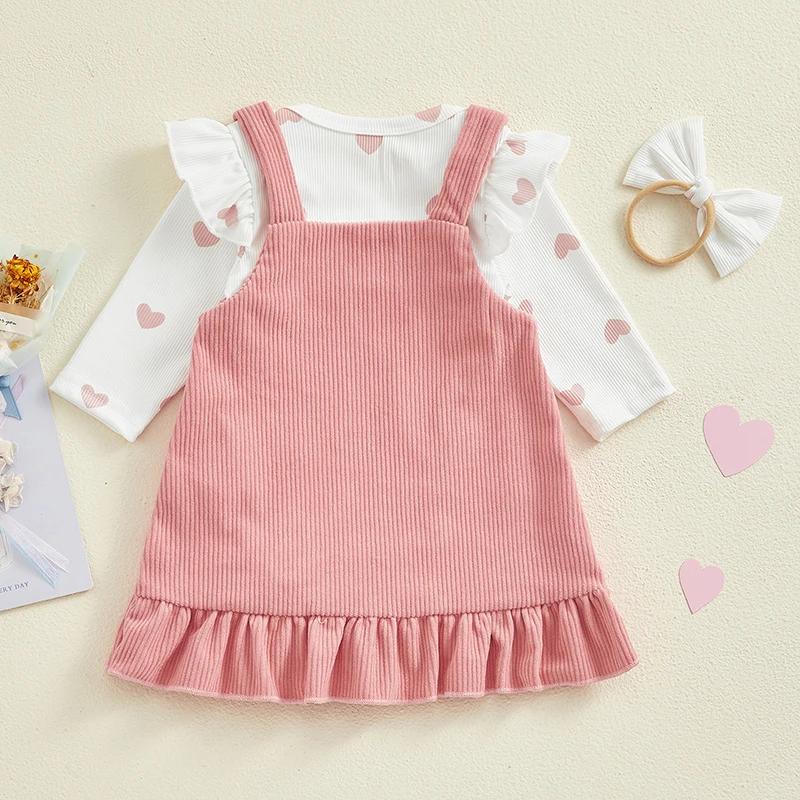 Baby Girls 3Pcs Spring Outfits Heart Print Romper + Suspender Skirt + Headband Set Newborn Clothes