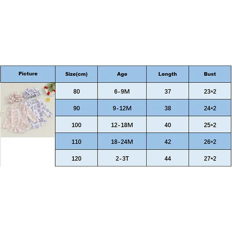 100 Bust: 19.69 Length: 15.75 Advised Age: 12-18 Months
