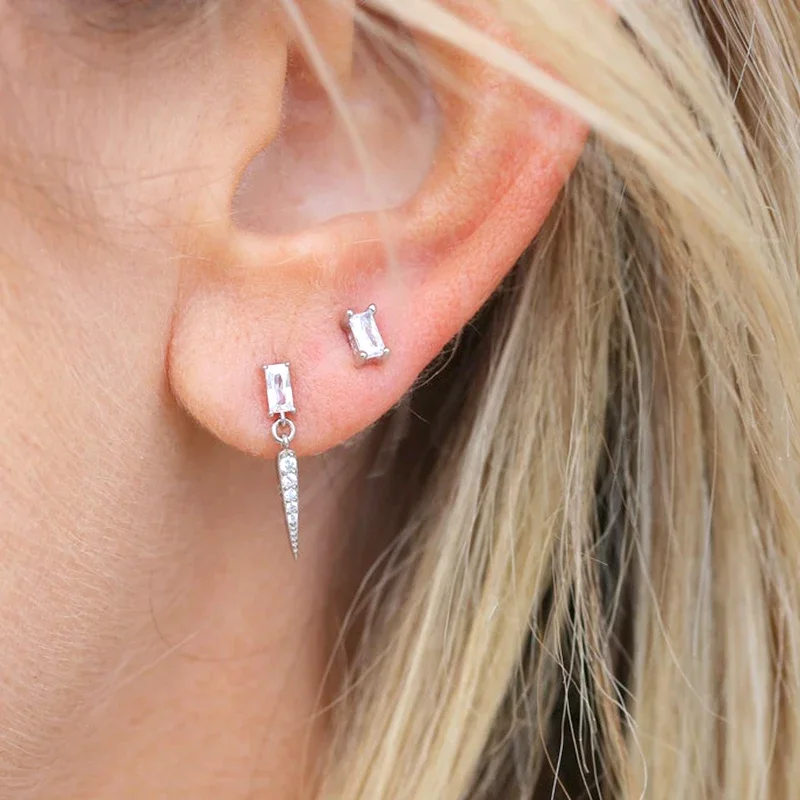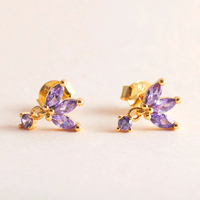 Trendy 925 Sterling Silver Ear Needle Three Zircon Black/White/Purple Stud Earring for Women Gold Silver Small Piercing Jewelry