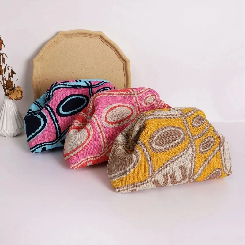 Trendy Knitted Clip Bag Versatile Large Capacity Suitable for Storage Bags New High-end Pattern Clutch Bag Love Knitted Hand
