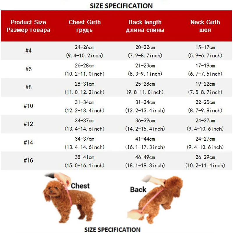 Size 4: Back length 20-22cm/7.9-8.7'', Chest girth 24-26cm/9.4-10.2'';