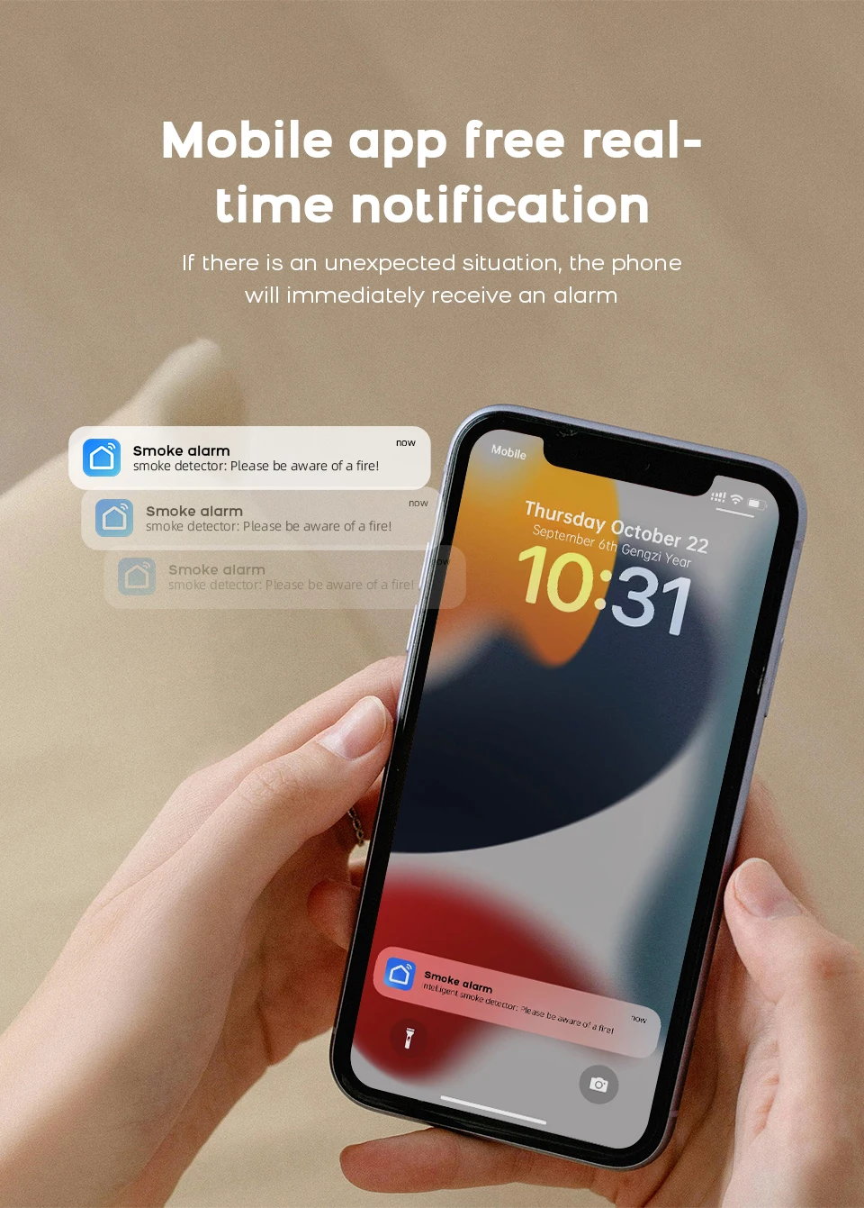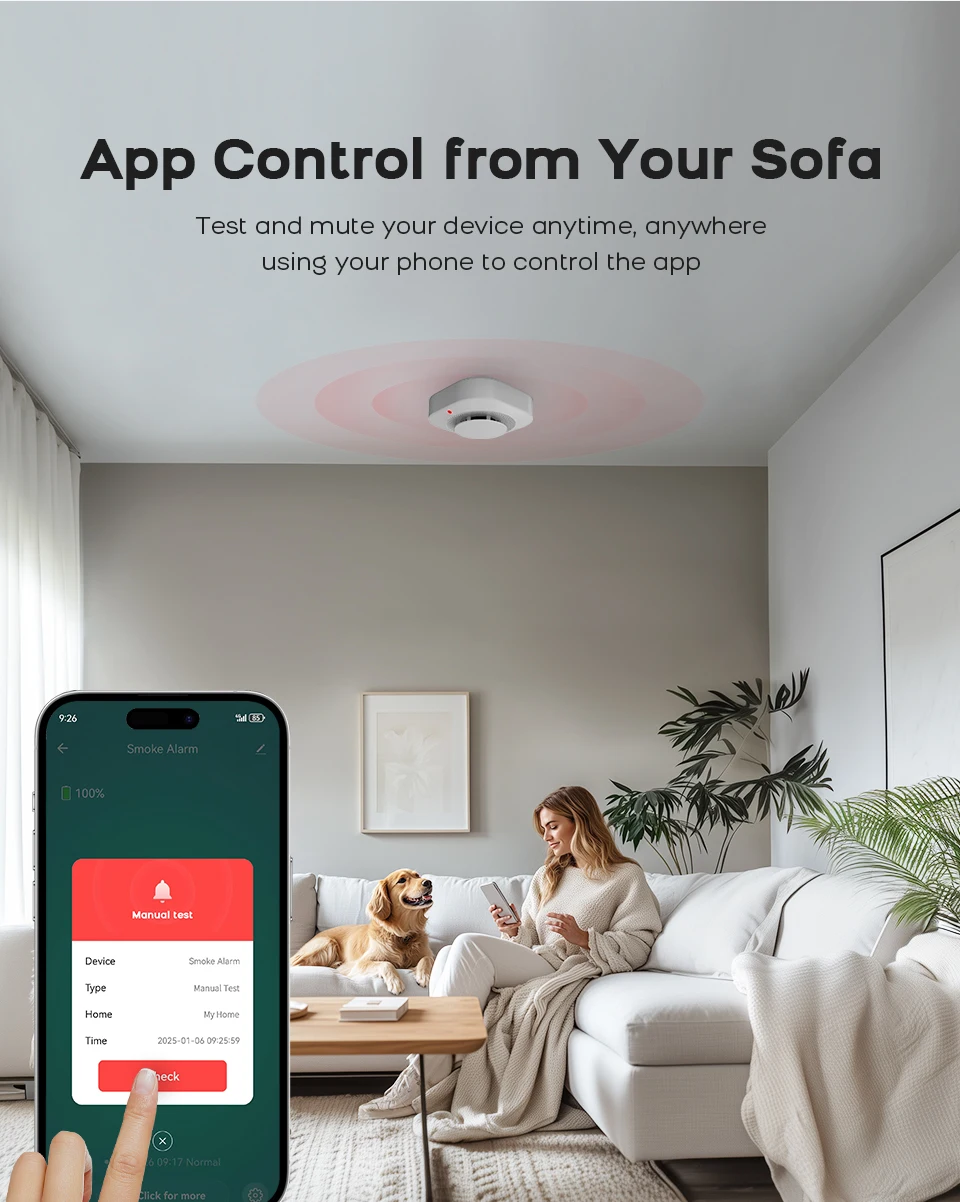 3.App Push Notifications and Control:Compatible with Smart Life and Tuya App enables the timely discovery of danger of fire or smoke and real- time notifications to your smart phone.