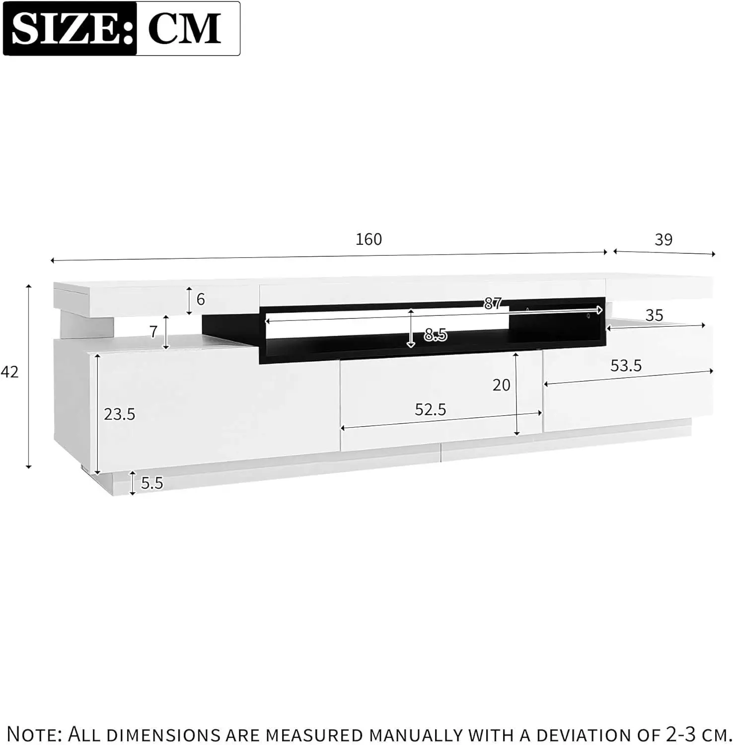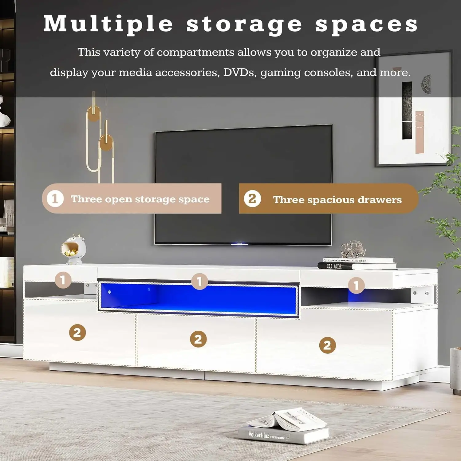 • High-Quality Materials: The high-gloss modern white TV cabinet is made of high-quality particle board, which is sturdy and durable for a long service life. It can accommodate TVs up to 70 inches in size.