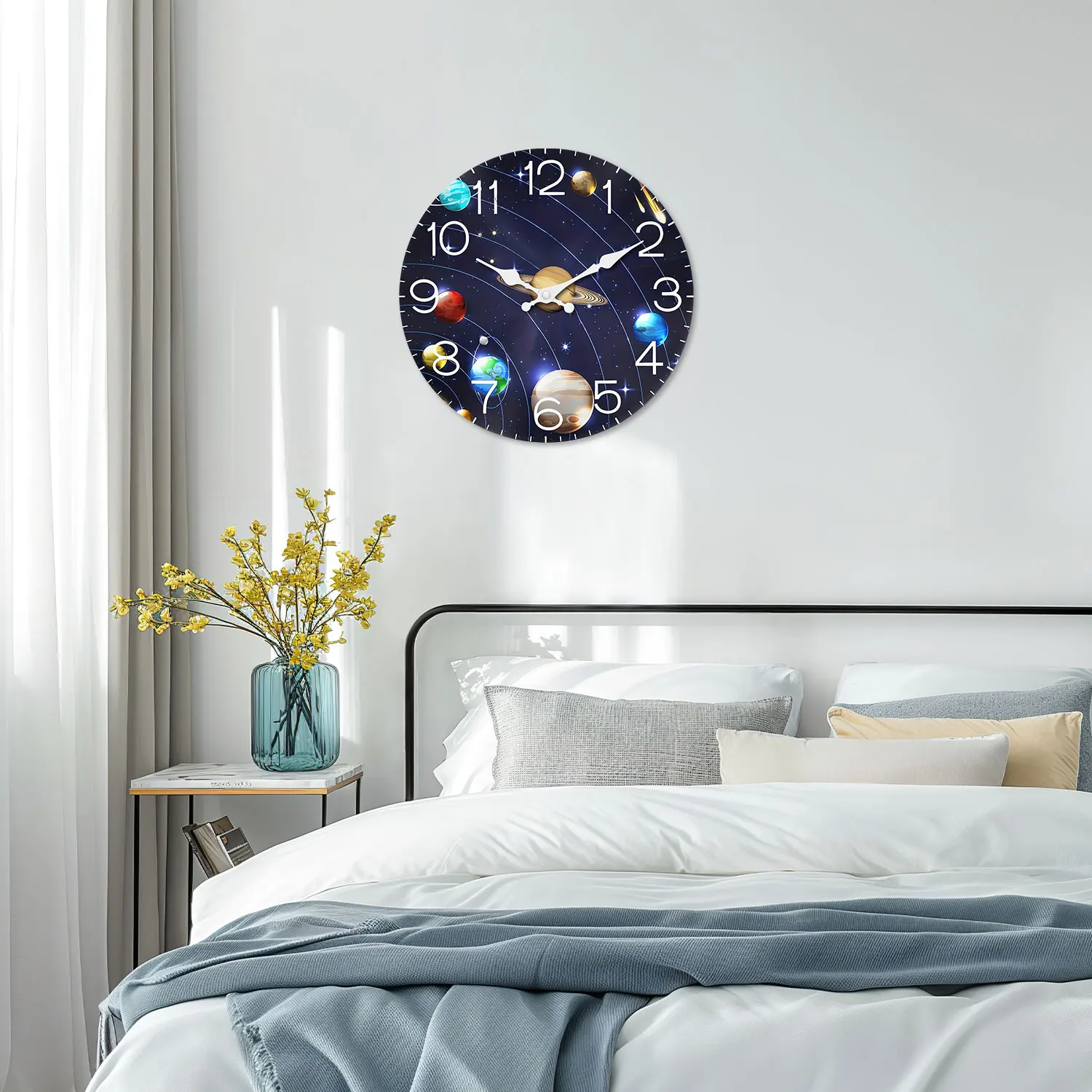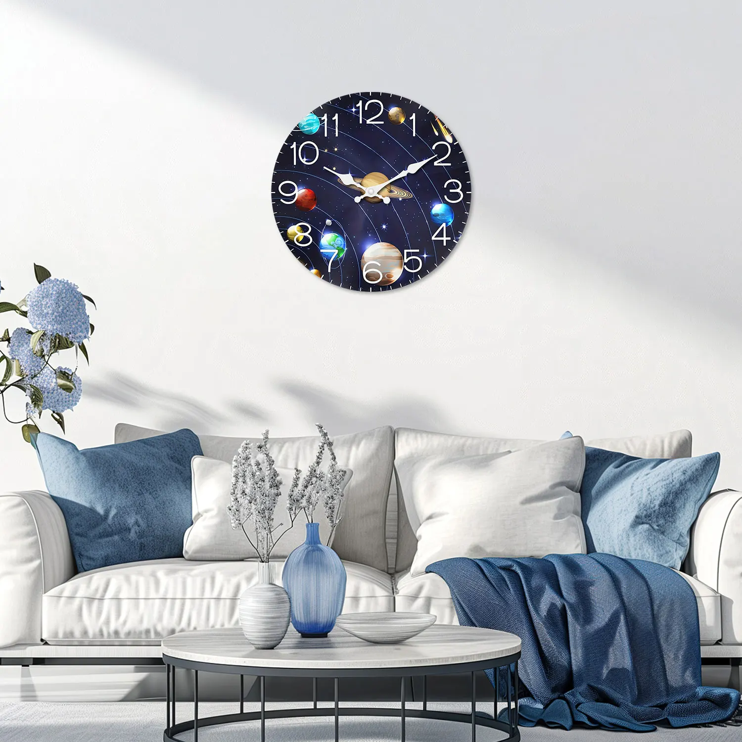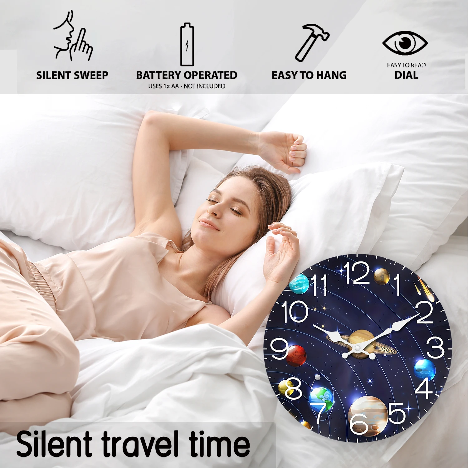 Universe Planet Pattern Wooden Wall Clock, 10-14inch Silent Wall Clocks, Aa Battery Powered, Suitable for Living Room, Bedroom, Office, Valentine’s Day, Carnival, Ramadan Festival, (No Batteries)