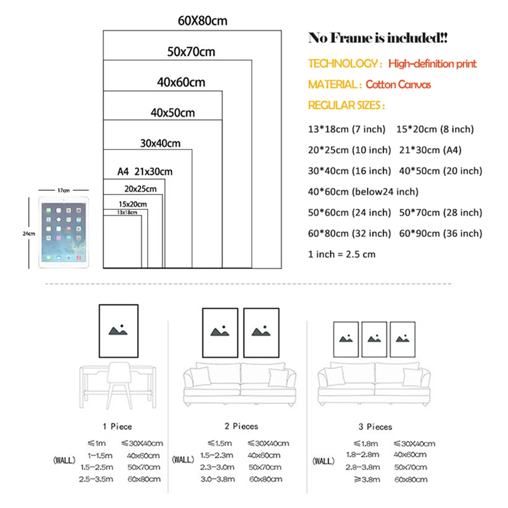 20x60cm No Frame, 30x90cm No Frame, 40x120cm No Frame, 50x150cm No Frame