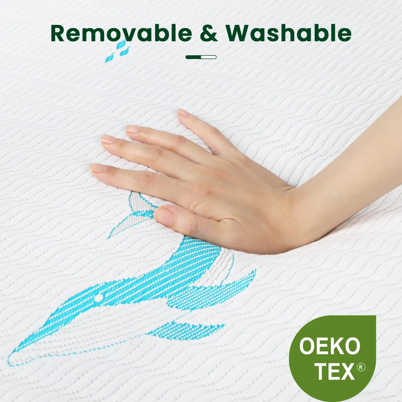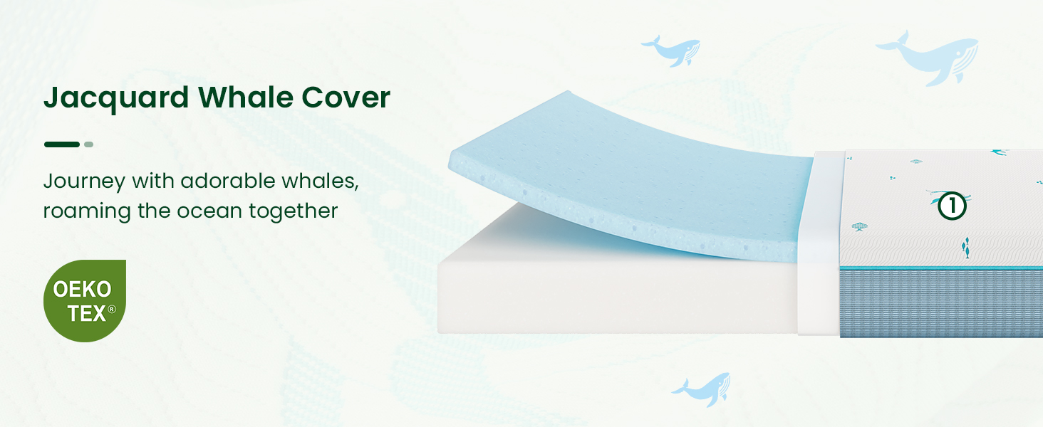 Ocean-inspired washable cover: dive into a bedroom refresh with our new premium fabric cover, featuring playful whale patterns and flowing wave lines that bring the vitality of the ocean indoorsAs always, the cover zips off easily for quick washing to keep your mattress fresh for cozy nights.