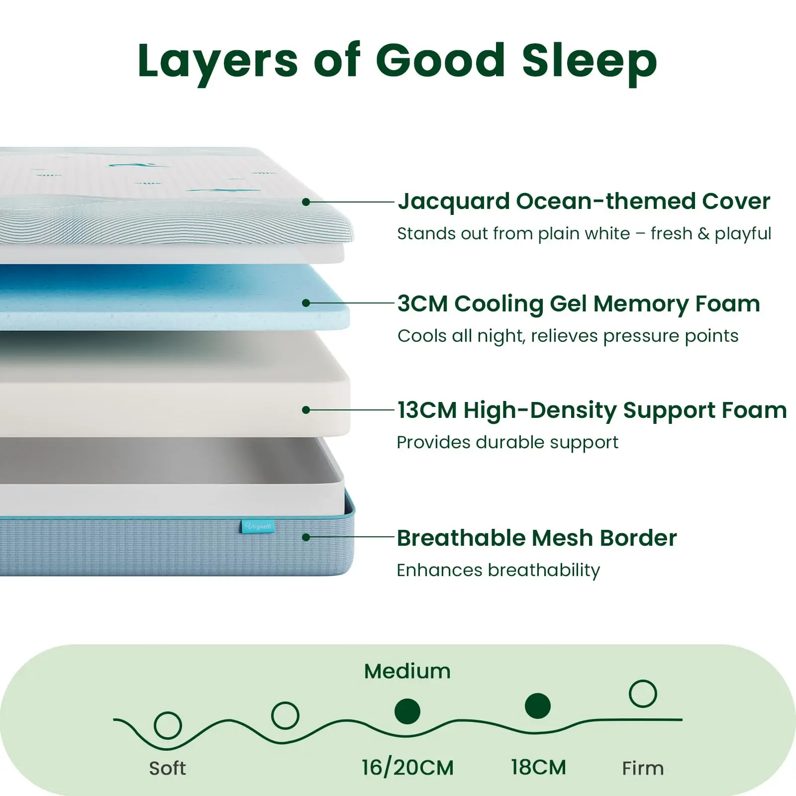 Vesgantti Mattress, 16/18/20cm Ocean-Inspired Memory Foam Mattress with Cooling Gel Foam and Breathable Mesh – Medium