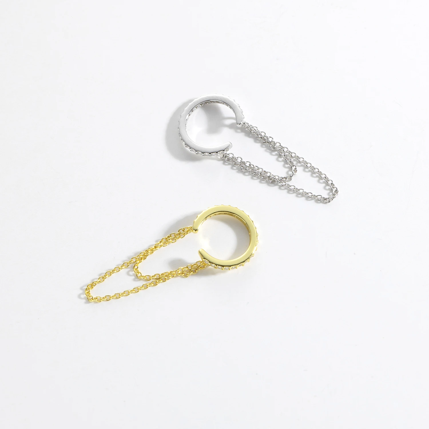 VEWANT 925 Sterling Silver Double Chain Earcuff Punk Cuff Luxury Cuff Earring No Piercing Clips Fine Jewelry Women Gift