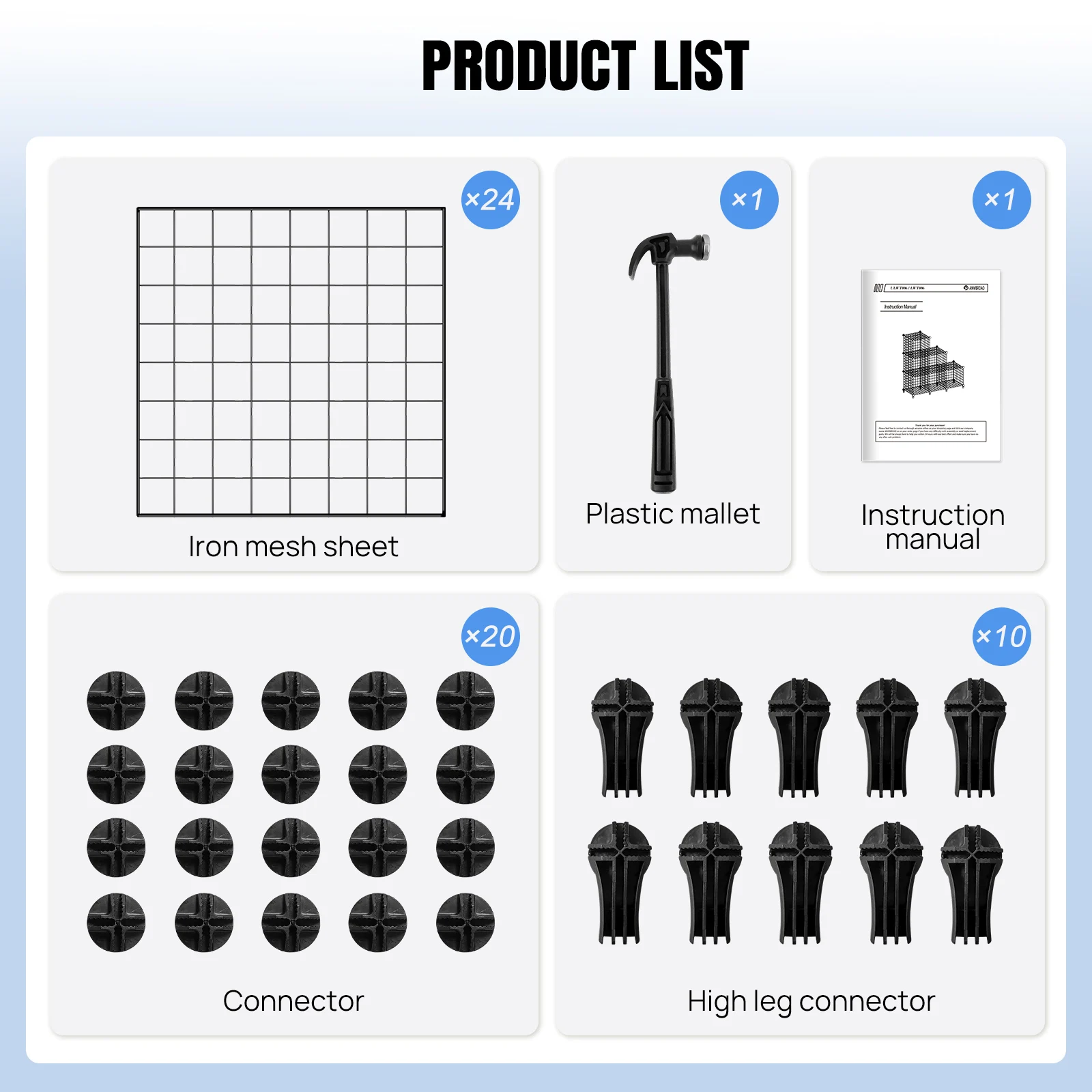 Iron mesh: 24 pieces, single piece size: 30 * 30cm