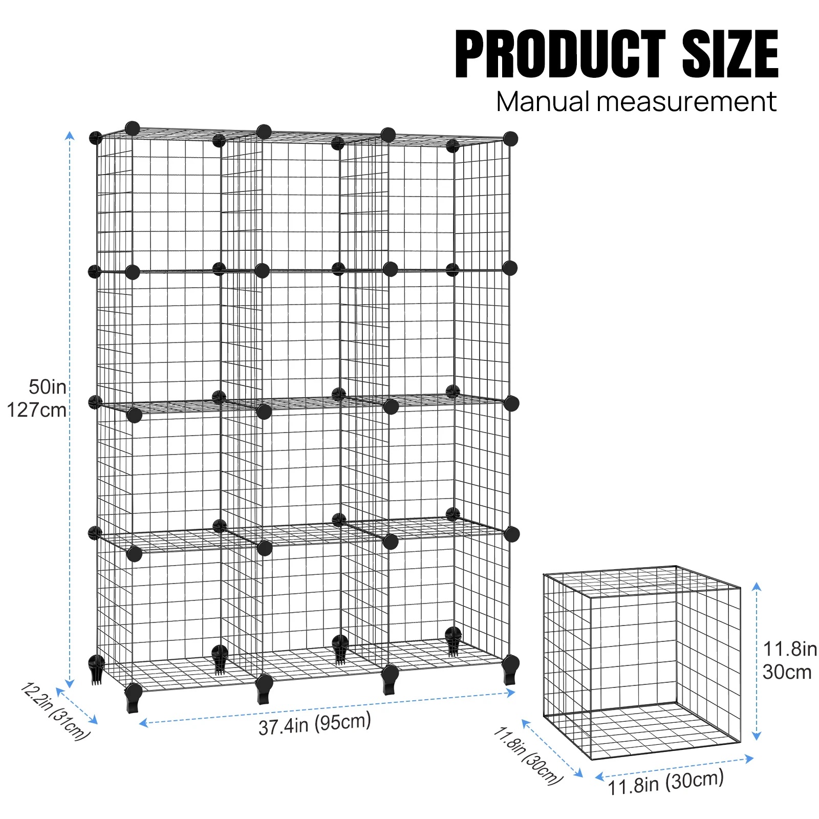 – Each cube unit is 30x30x30cm inches and the storage unit holds around 40kg per tier.