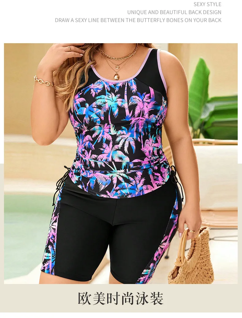 VigoBreviya 2025 Print Patchwork 2 Piece Plus Size Tankini Women Strapped High Waist Curvy Swimsuit Beach Lady Big Bathing Suit