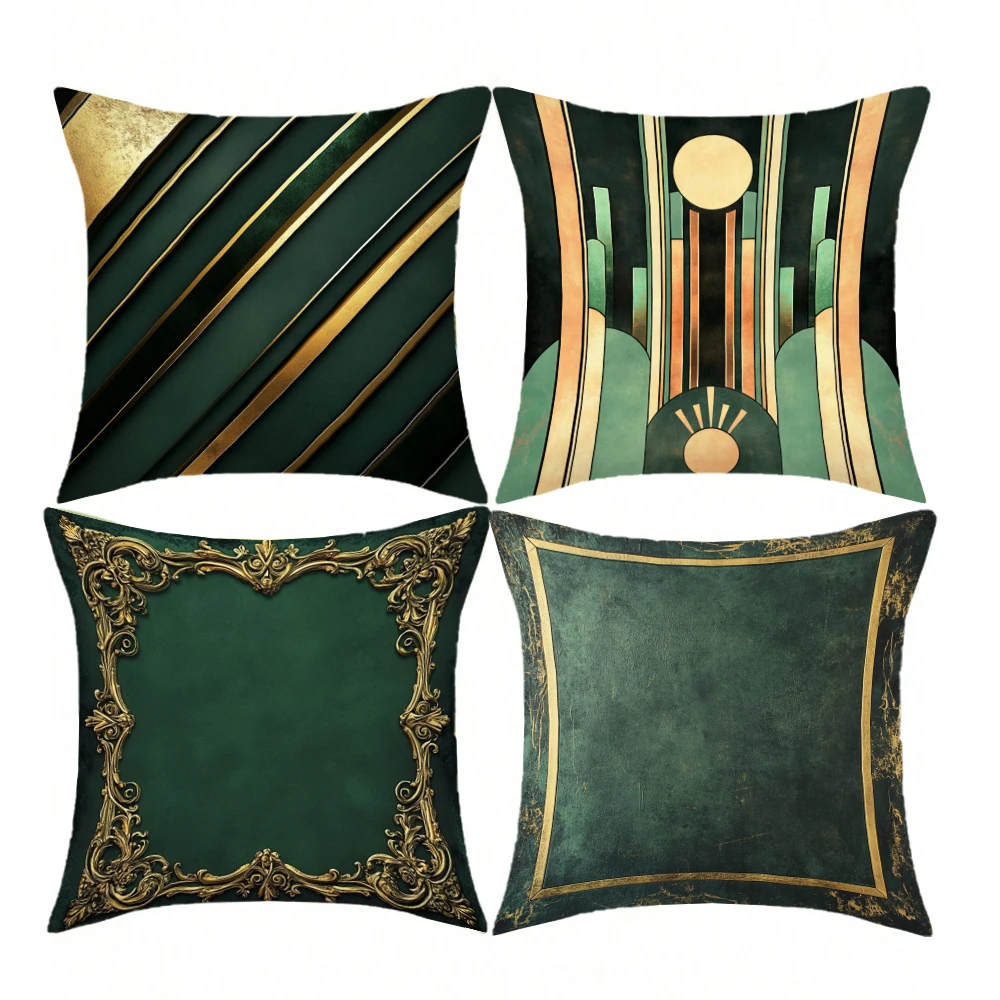 Vintage Green and Gold Geometric Print Pattern Throw Pillow Cover Polyester Cushion Cover Home Decor Pillow Cover with Zipper