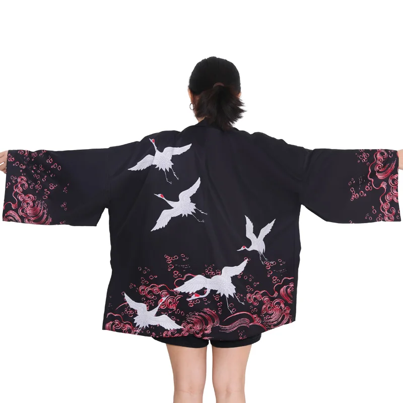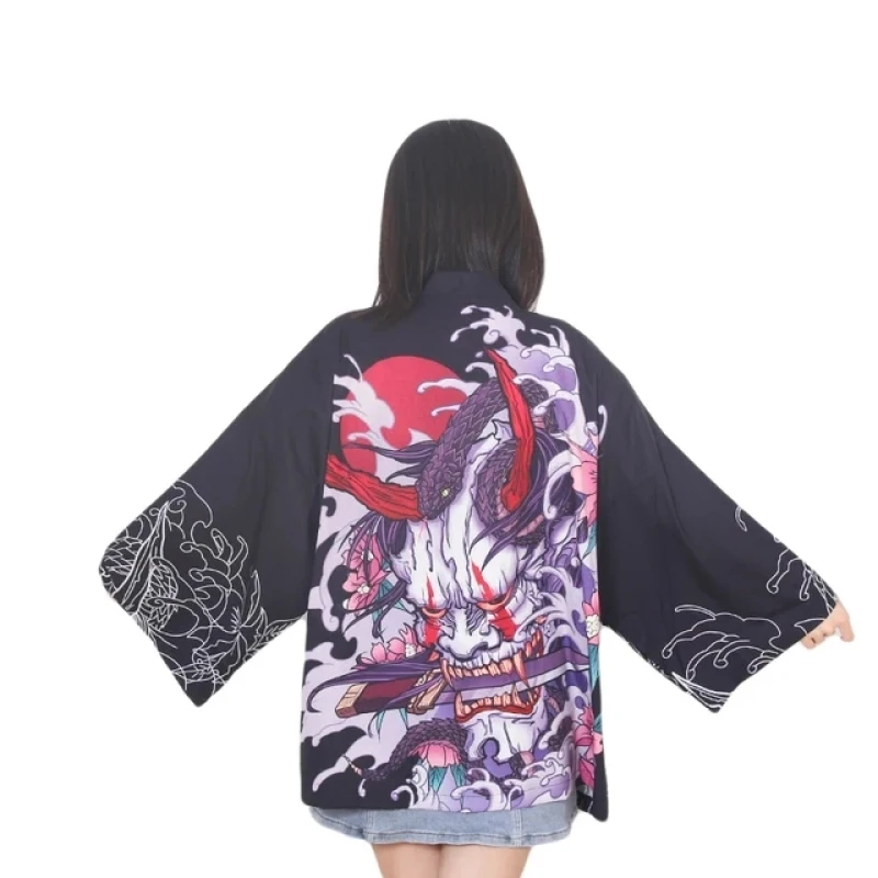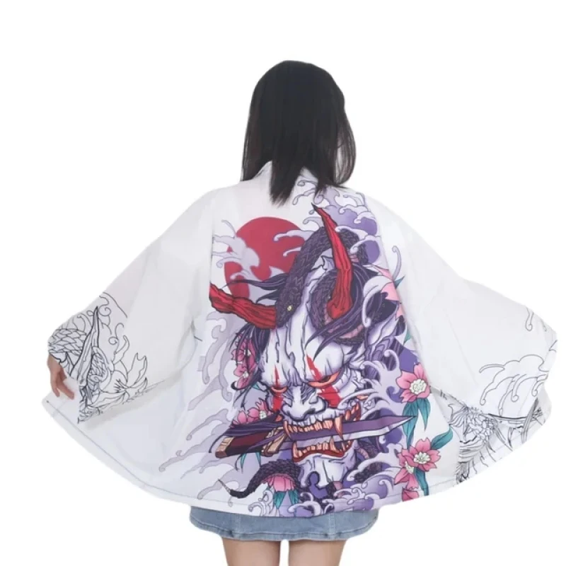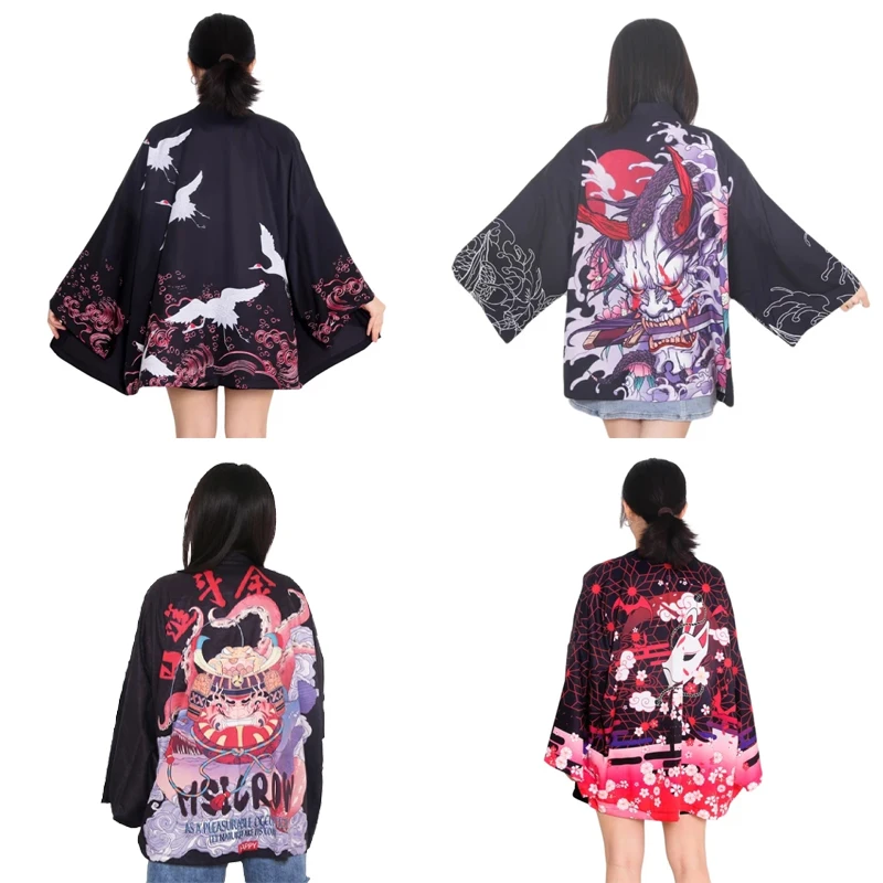 Vintage Japanese Samurai Print Kimono Streetwear Women Cardigan Shirt Haori Harajuku Traditional Beach Yukata Asian Clothes