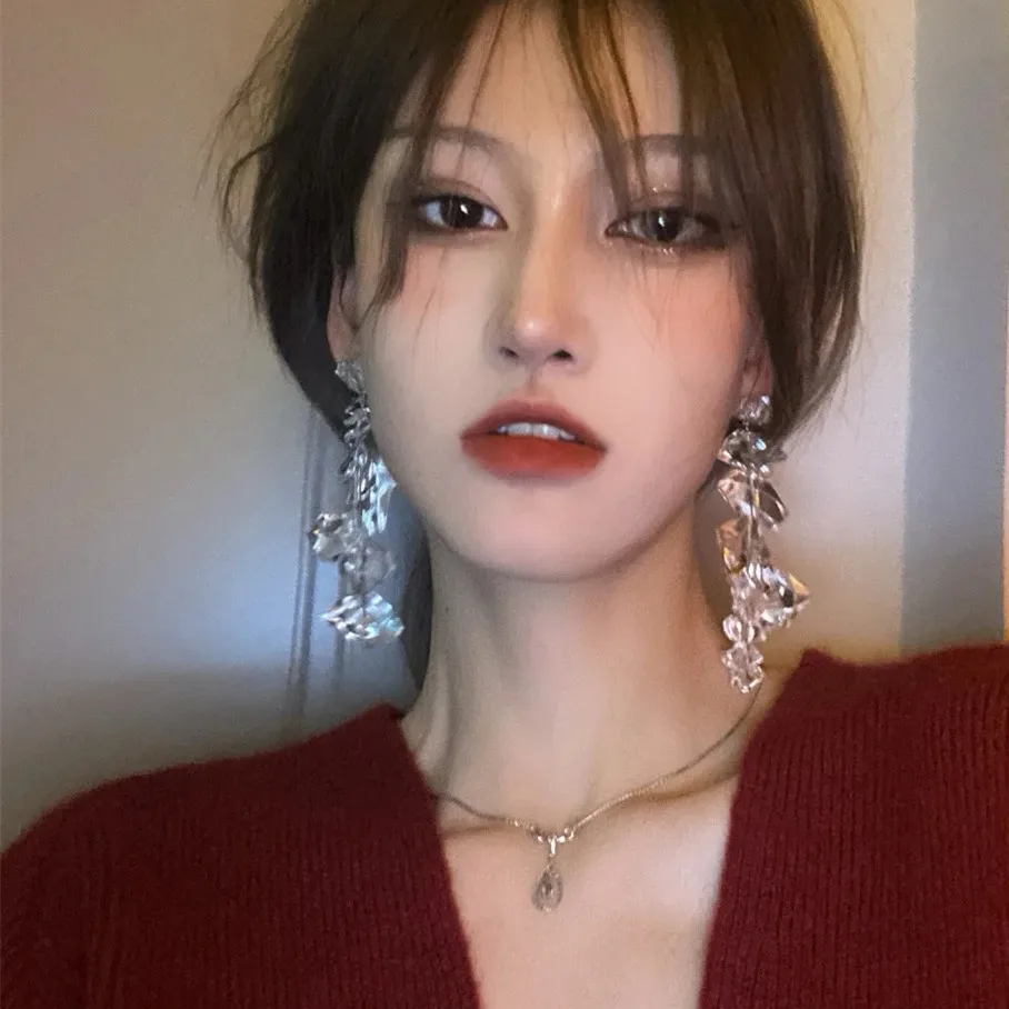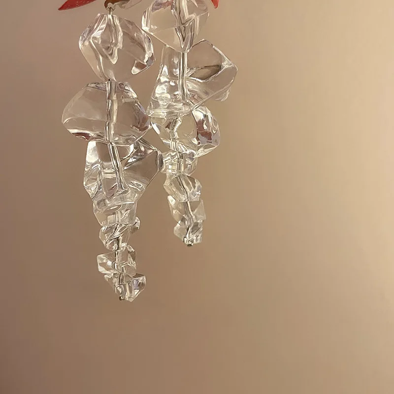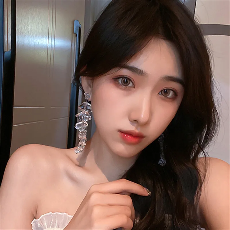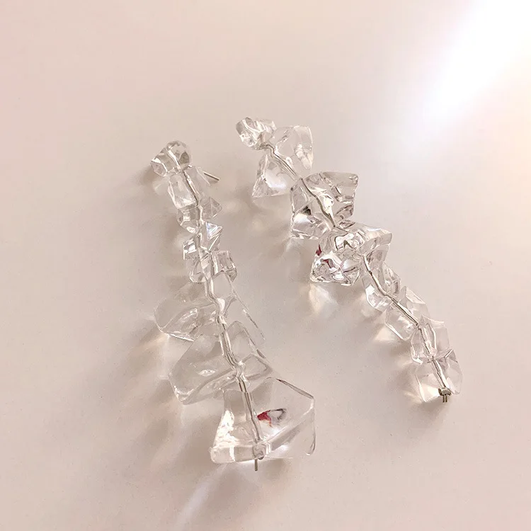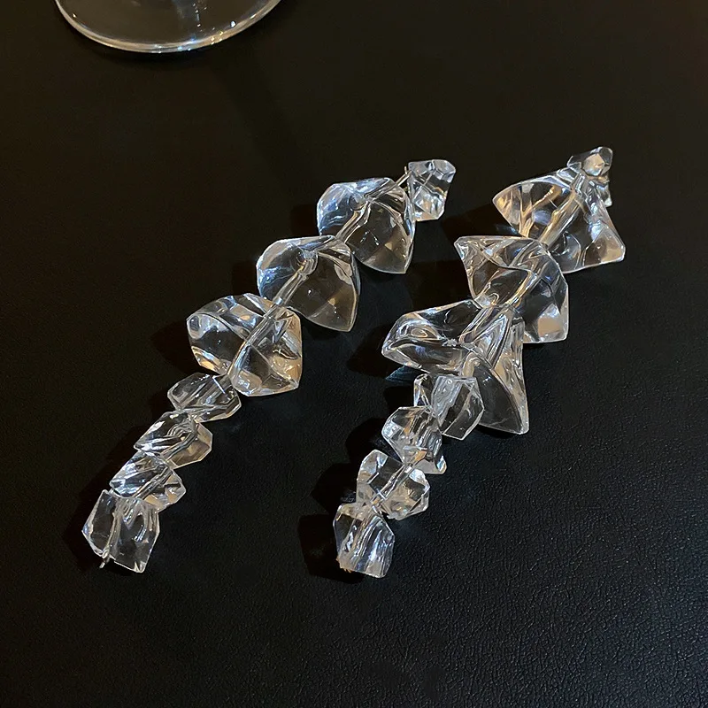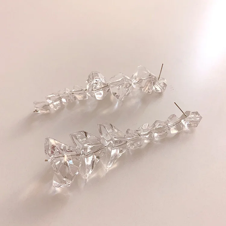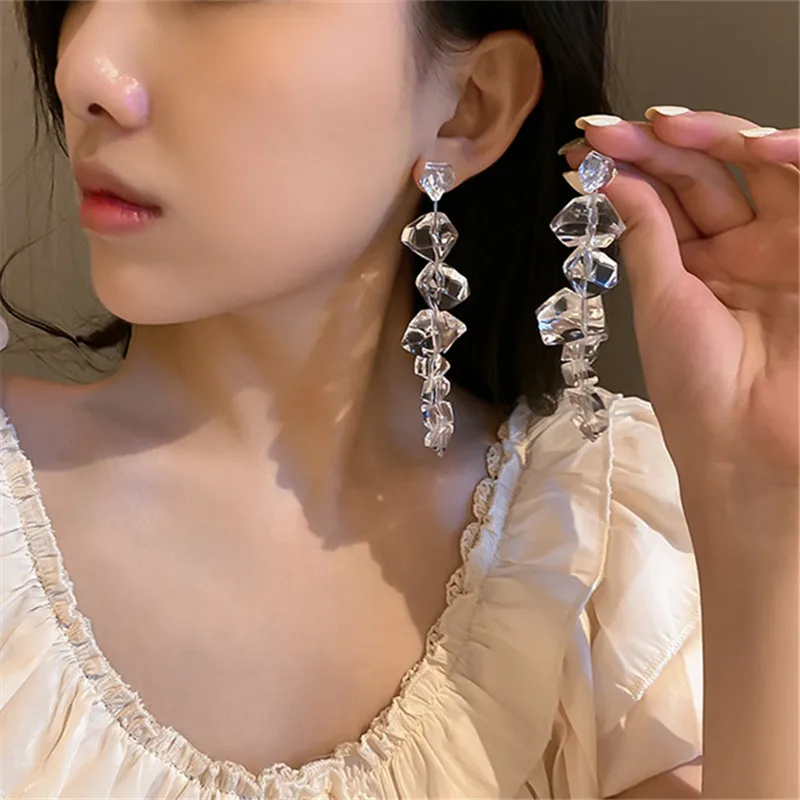 Vintage Long Tassels Irregular Transparent Acrylic Ice Shape Pendant Earrings For Women Hyperbole Big Earrings Party Jewelry