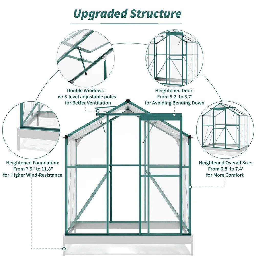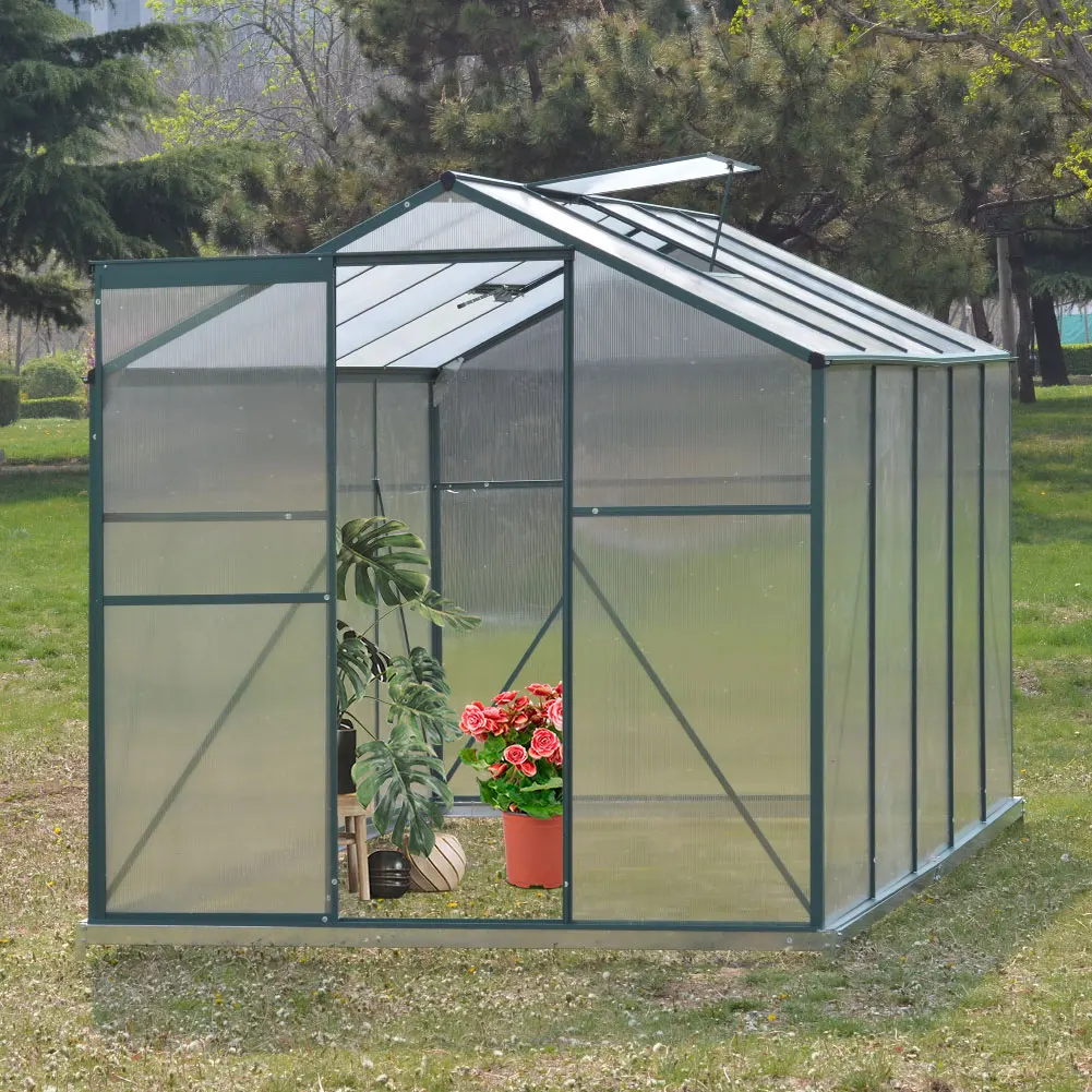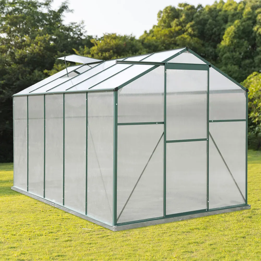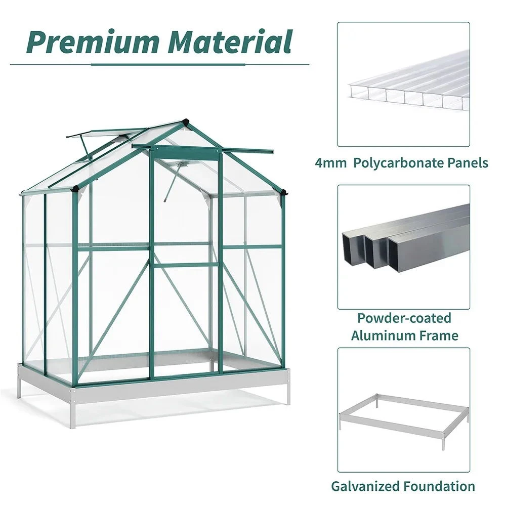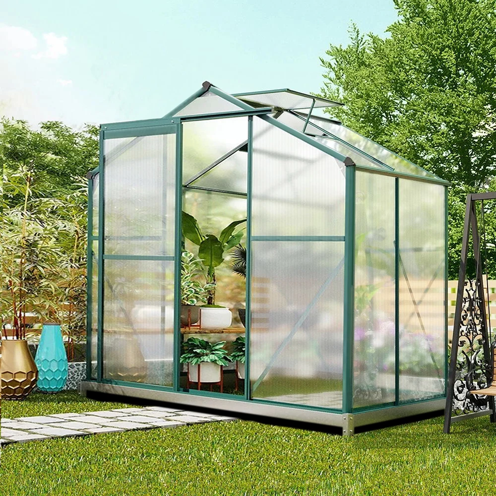 This frame of this practical greenhouse is built from superior aluminium, which lays the foundation of the upright and sturdy structure. The polycarbonate-made panels are semi-transparent, which allows you to check on the plants from time to time. To make sure that the inner environment is in the best condition, the greenhouse is paired with 2 window openings. An impressive greenhouse for a planting lover like you.