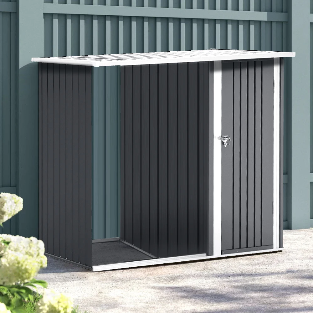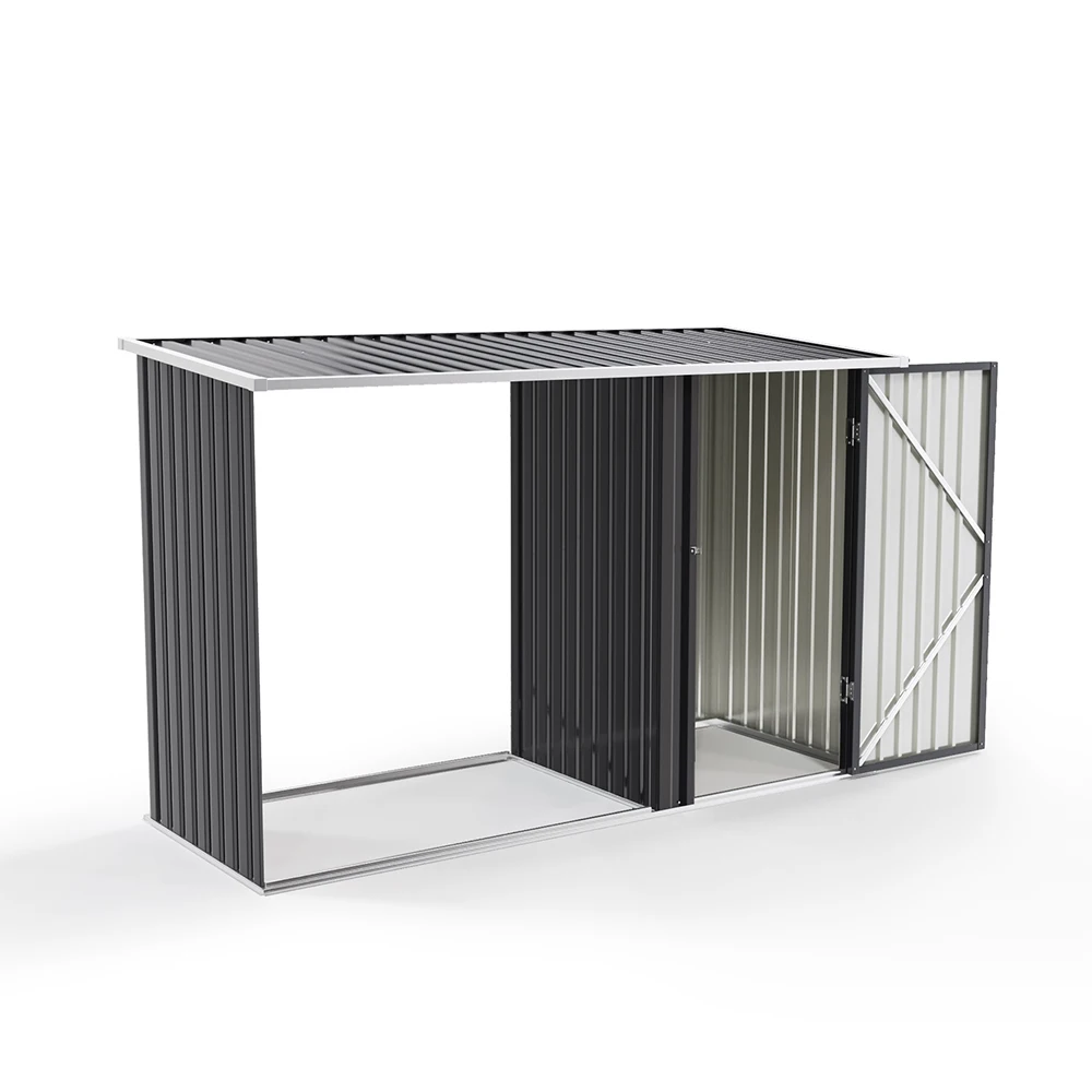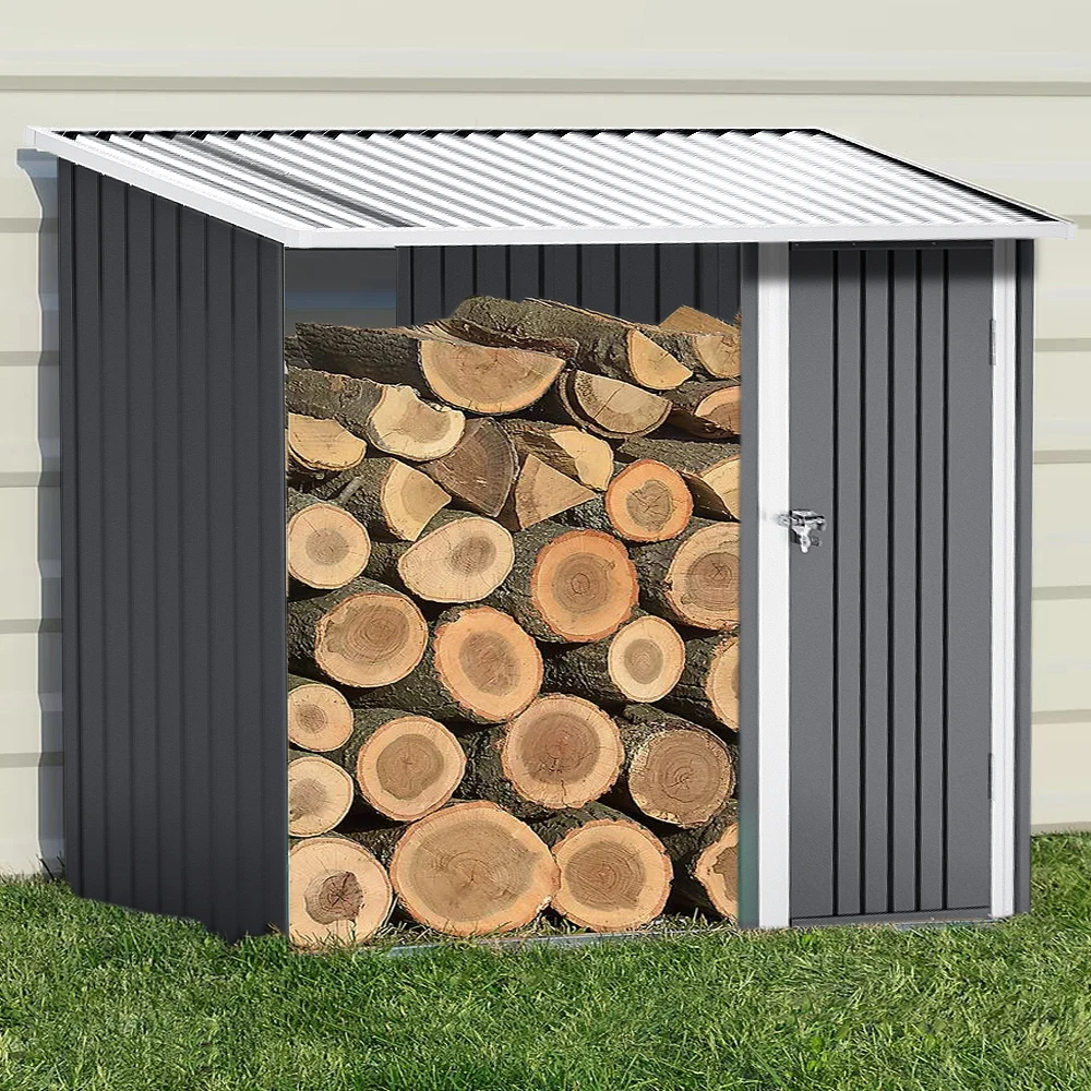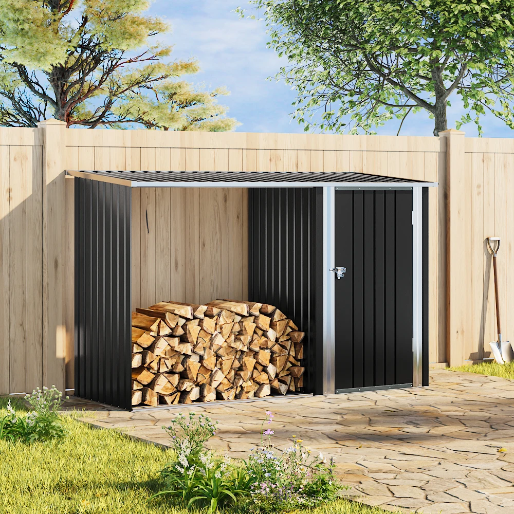 Voltsify Steel Outdoor Garden Storage Shed with Log Stacking Rack for Gardens Patios Garage