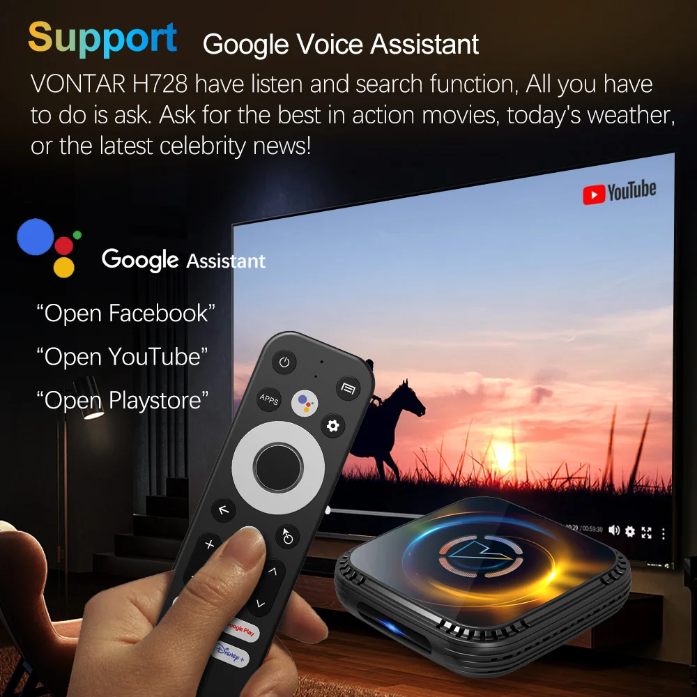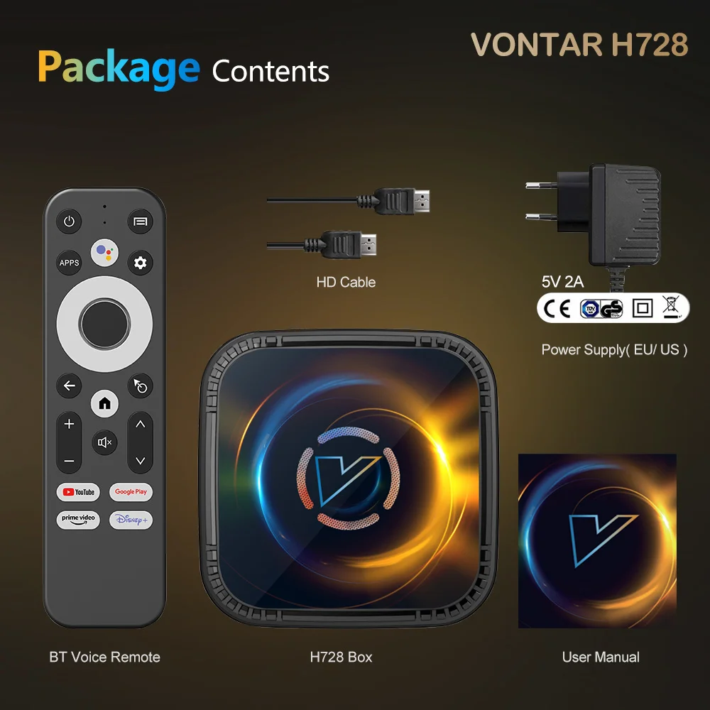 VONTAR H728 Android 14 TV Box with Allwinner H728 Octa Core Cortex A55 Support AV1 8K Video 4K@60fps 1000M LAN Wifi6 BT5.x Google Voice Media Player