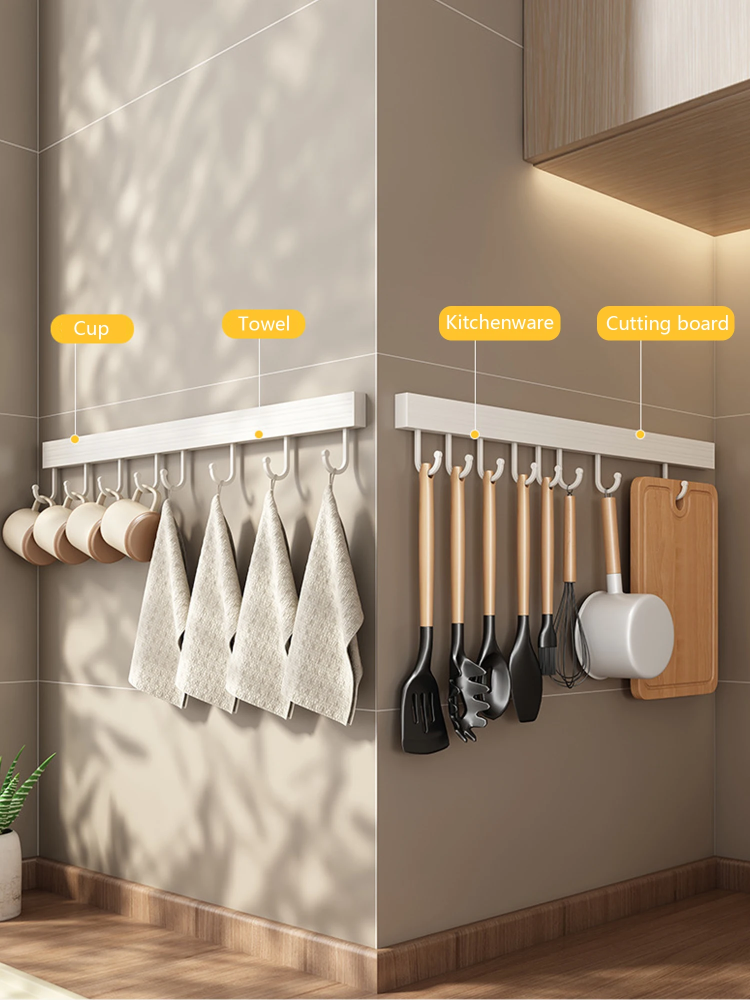 5 reviews for Wall Mounted Kitchen Hook Rack No-Punching Wall Hangers Rail Kitchen Utensils Rack Spoon Shovel Chopping Board Storage Rack