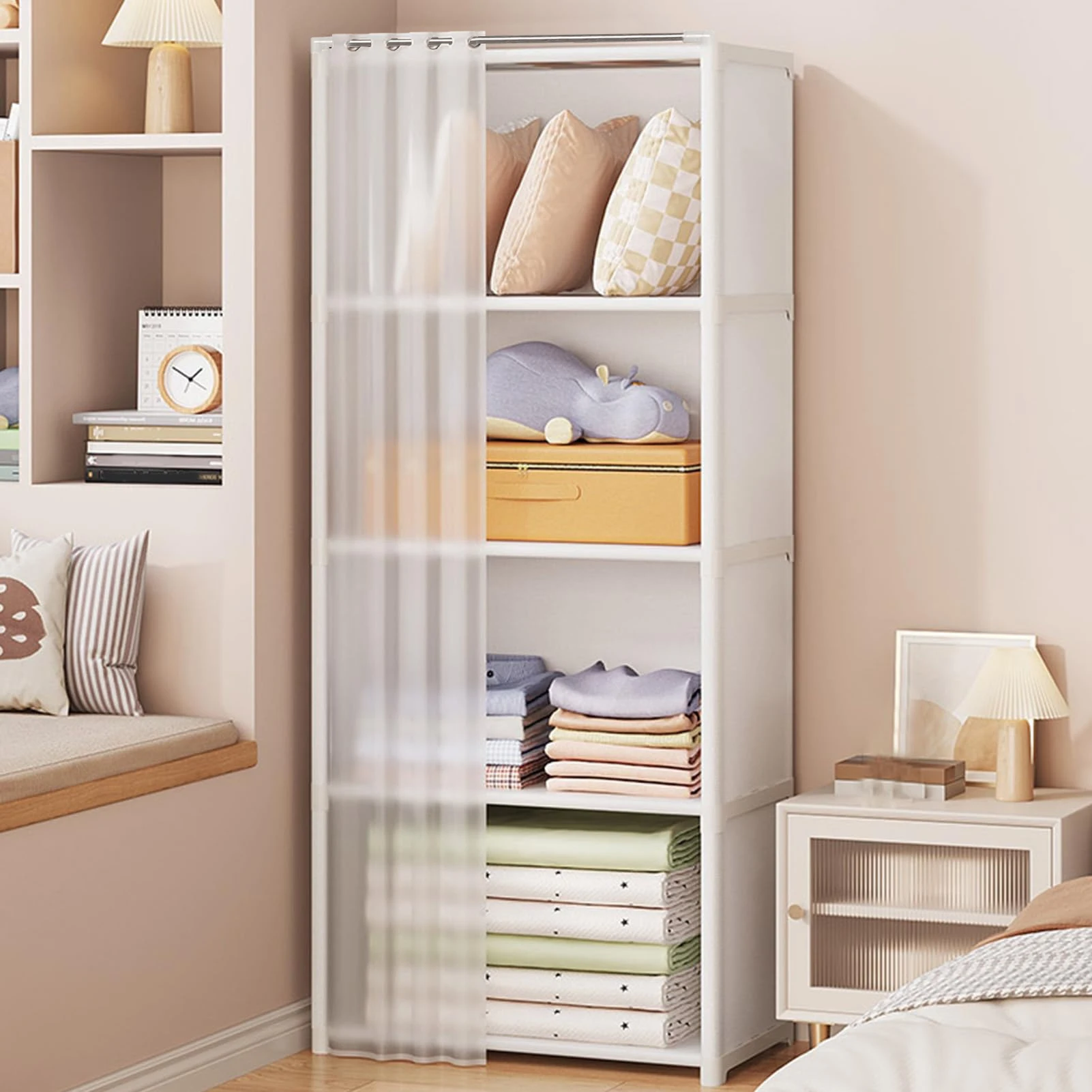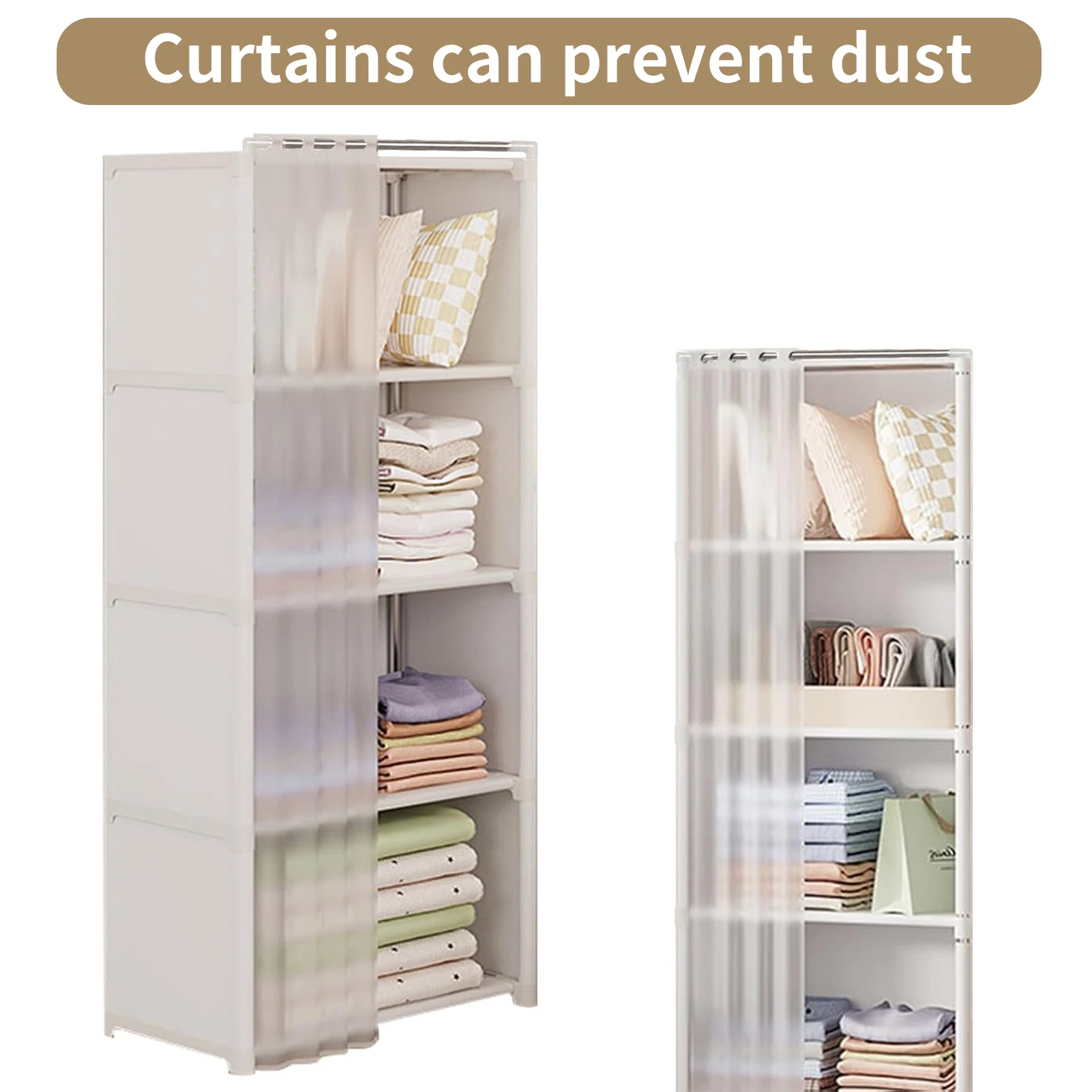 Effortless Convenience: With curtains for quick and easy access to you r clothes, this Portable Closet Wardrobe ensures dust-proof storage for a polished look. Simply pull the curtains to reveal neatly organized outfits and keep dust away from your clothing.