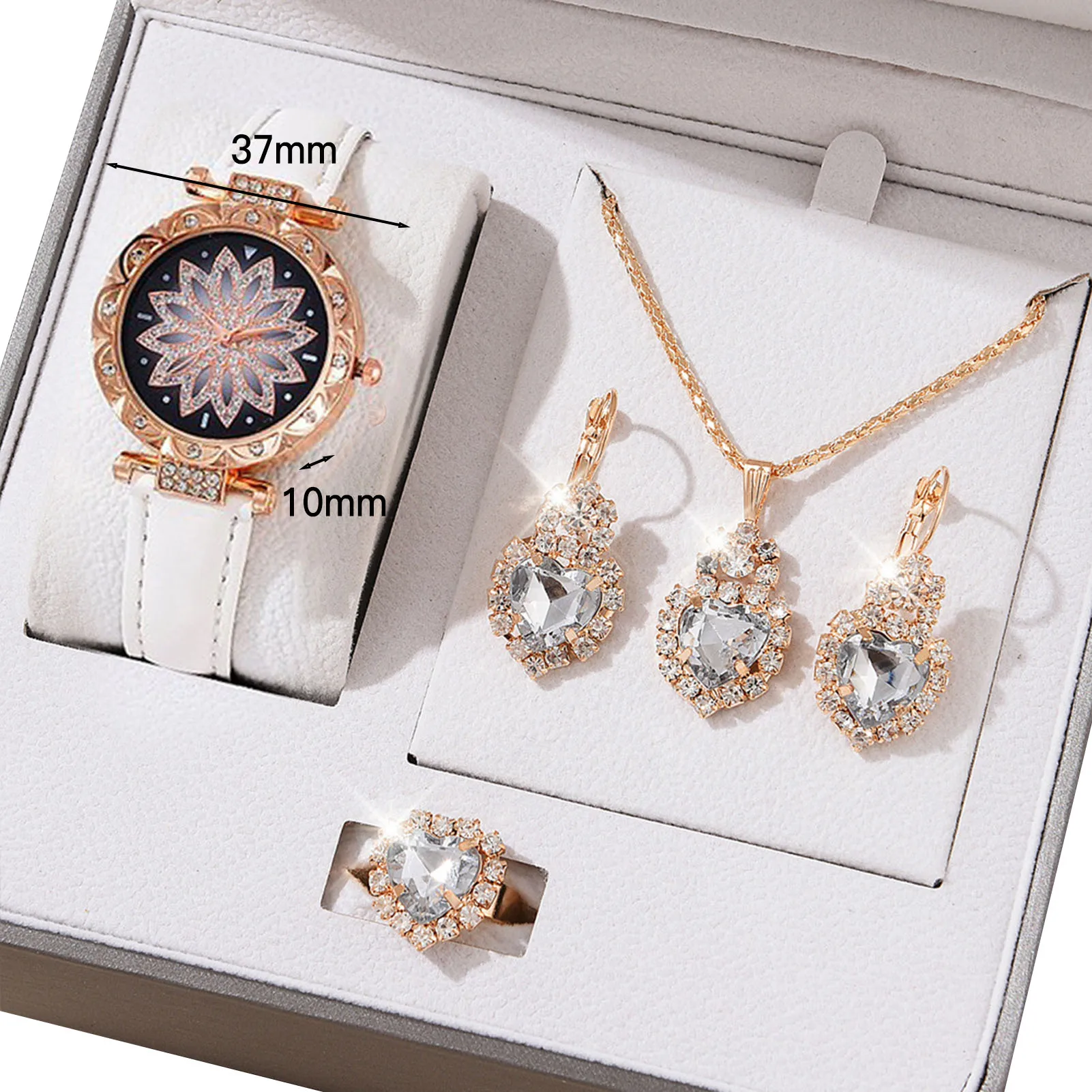 Elegant Jewelry Sets: This stunning collection includes a watch, necklace, ears, and s, making it a versatile and complete gift for women.