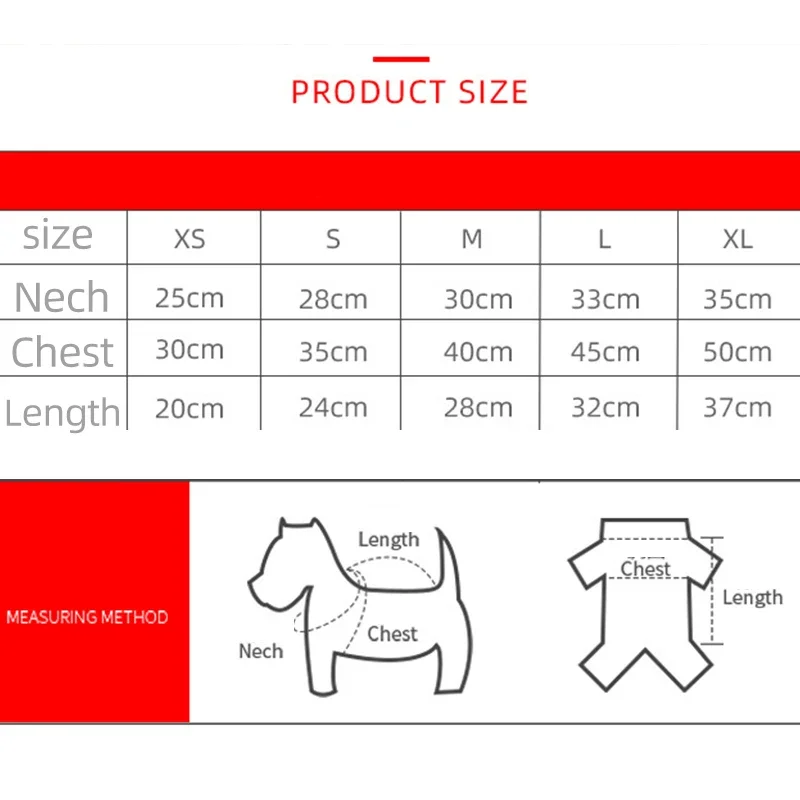 1. Only suitable for small and medium-sized dogs: Our bright winter dog clothes are available in 5 sizes. Not suitable for large dogs! In order to better fit your dog, please measure your size and compare it with the size chart before placing an order. Mainly refer to the bust circumference (not too tight when measuring), followed by back length. Suitable for Chihuahuas, Yorkshire Terriers, Bulldogs, Boston Terriers, Poodles, etc.