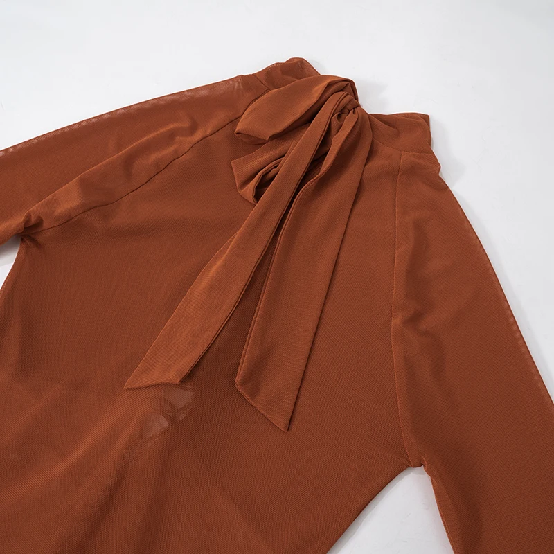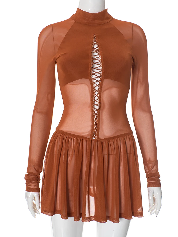 Weird Puss Shirring Women Dress Mesh Patchwork Pleated Full Sleeve Solid 2025 Spring Trend Stretch Midnight Party Club Bodycon