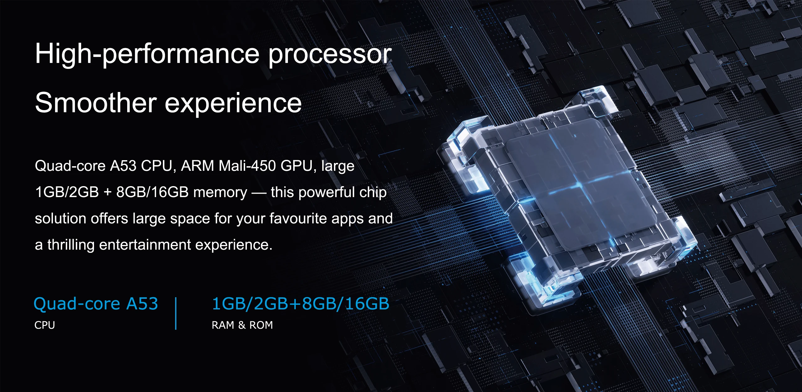 - CPU: Quad Core ARM Cortex A53 up to 2GHz