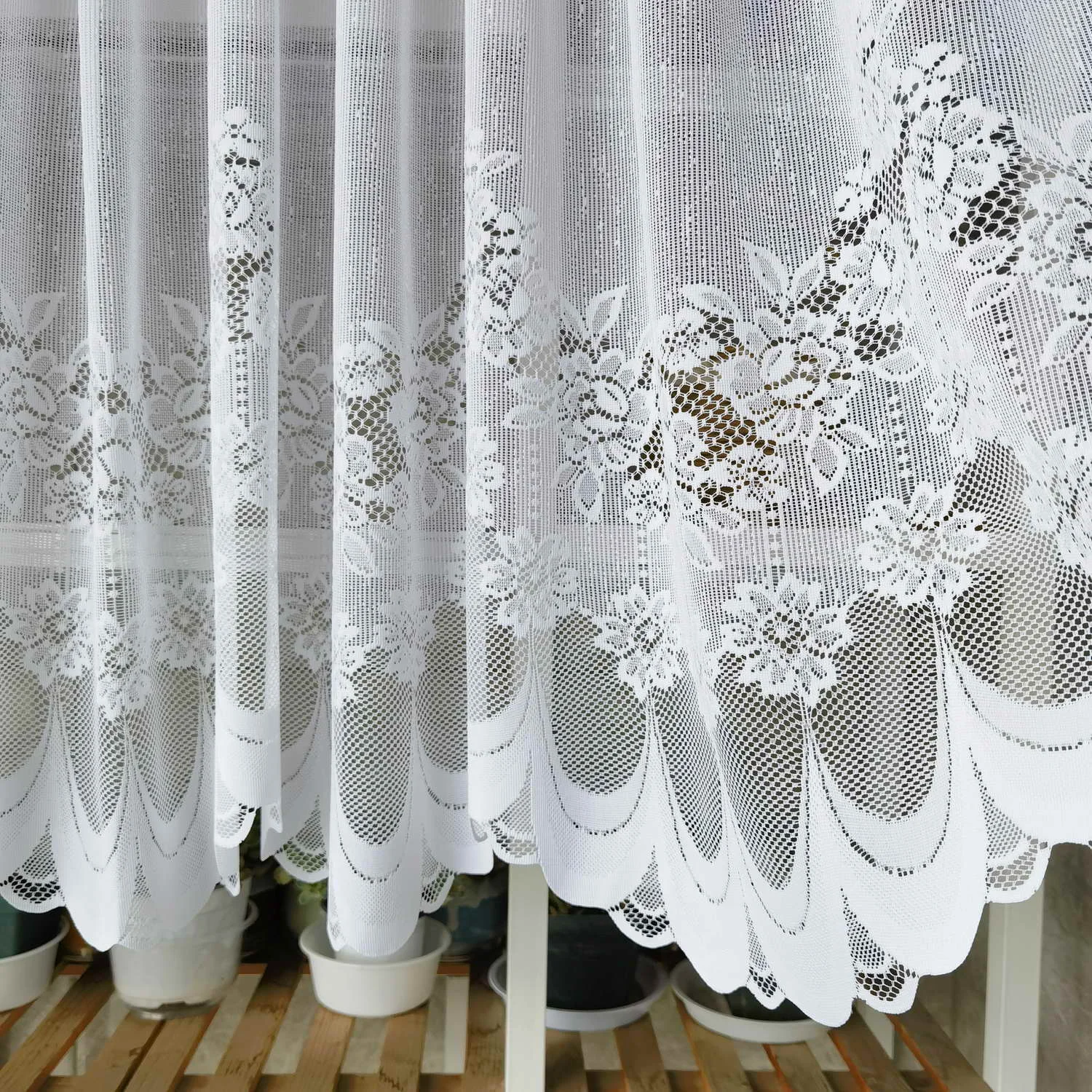 White Lace Sheer Curtains Long Scalloped Bottom Kitchen Short Curtain Valance Window Treatment for Bedroom Living Room Cabinet