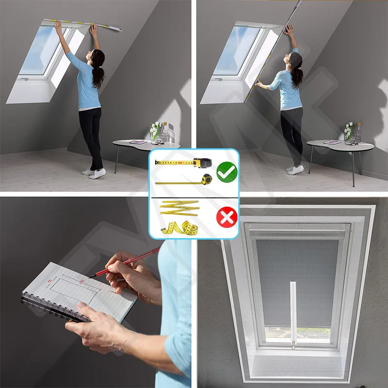 Fly screen for skylight with personalized 38cm window opening and closing (made from Vollnyl never hooks). Ideal for dormers, folding windows, tilt and swing windows and more.