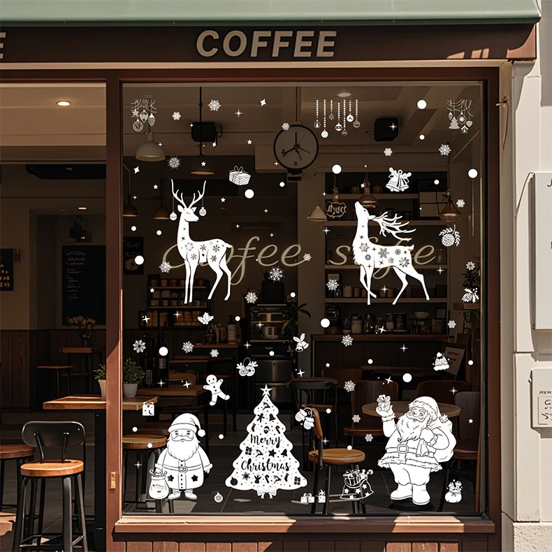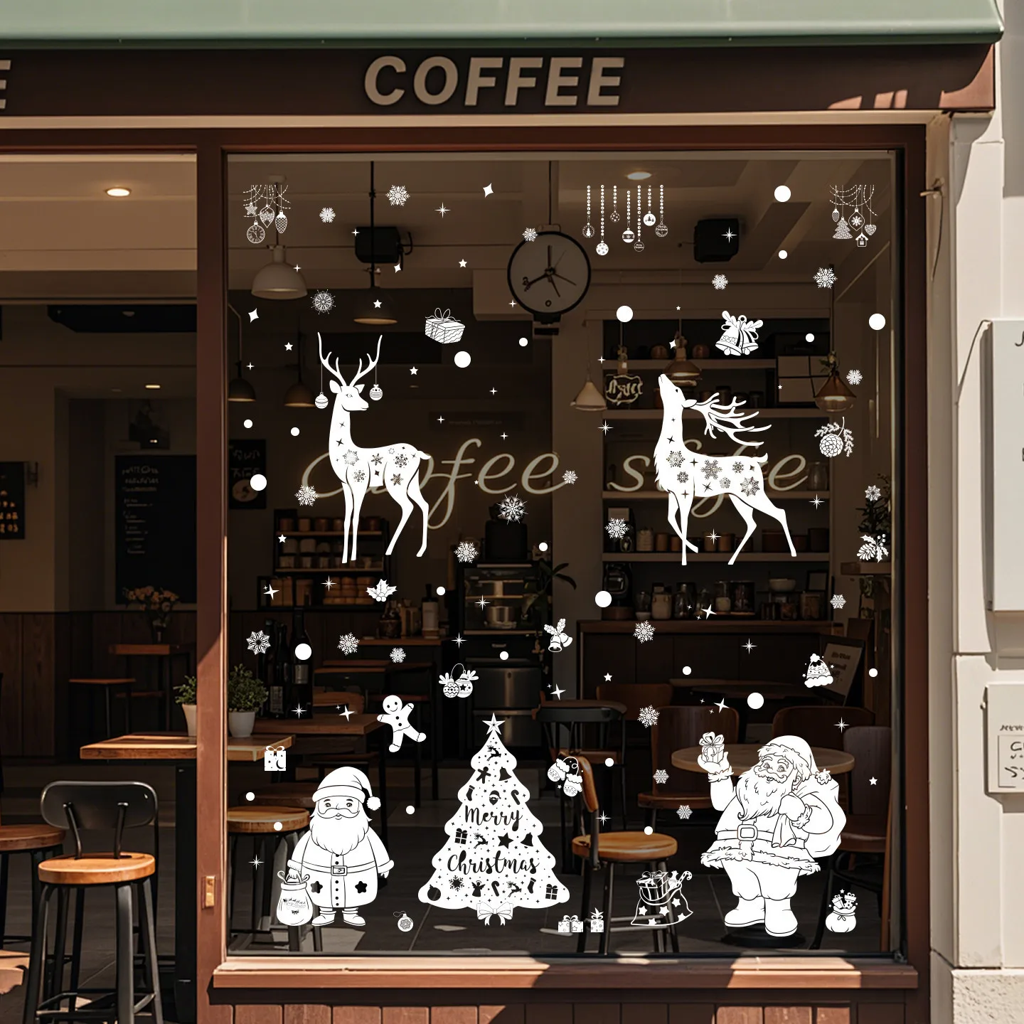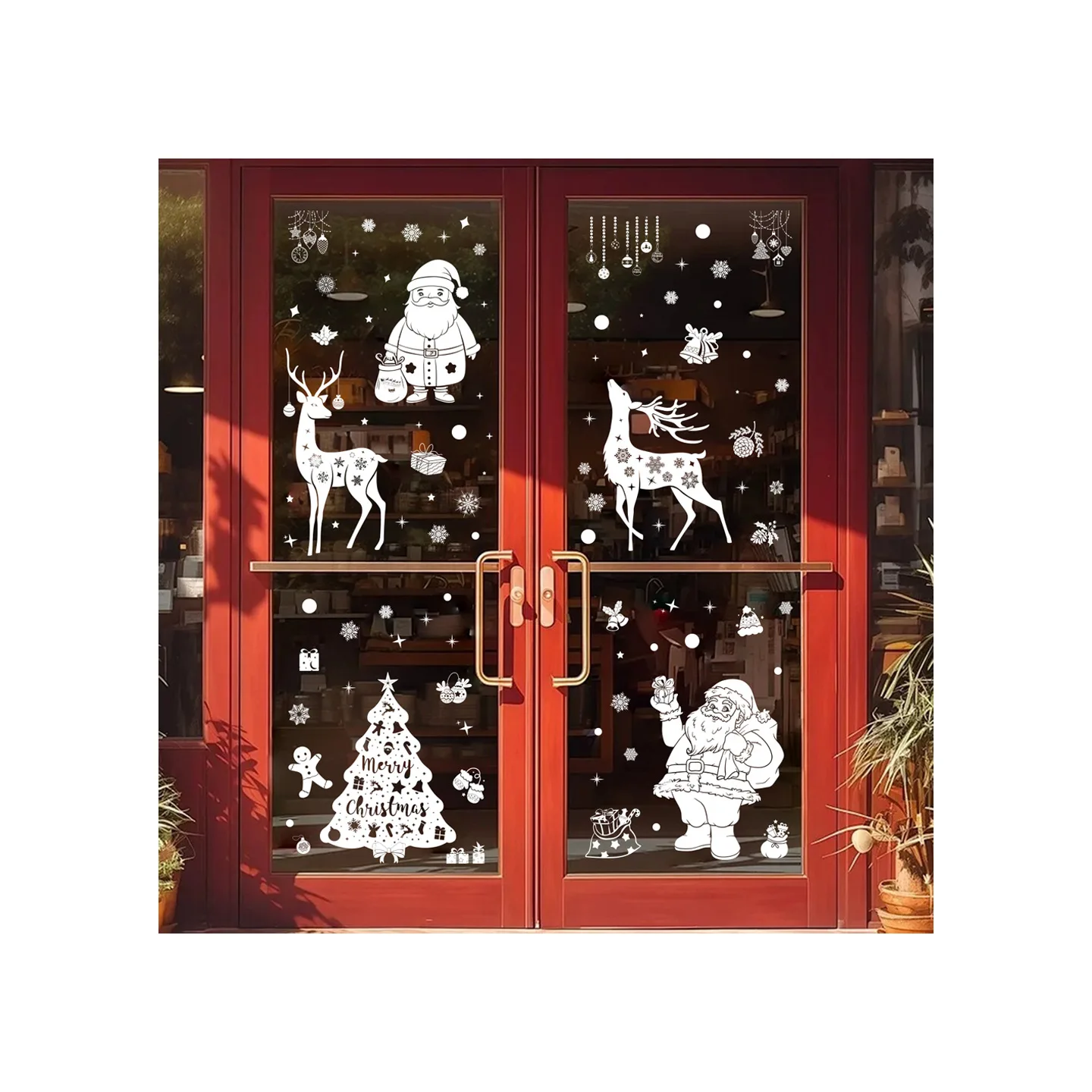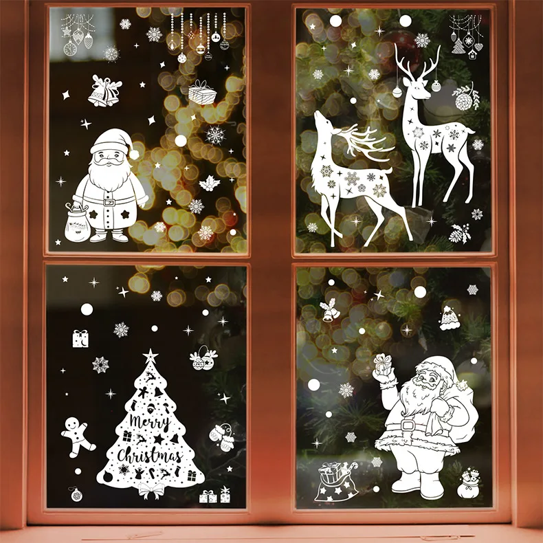 White Santa Claus electrostatic glass sticker window decoration snowflake elk Christmas tree custom sticker