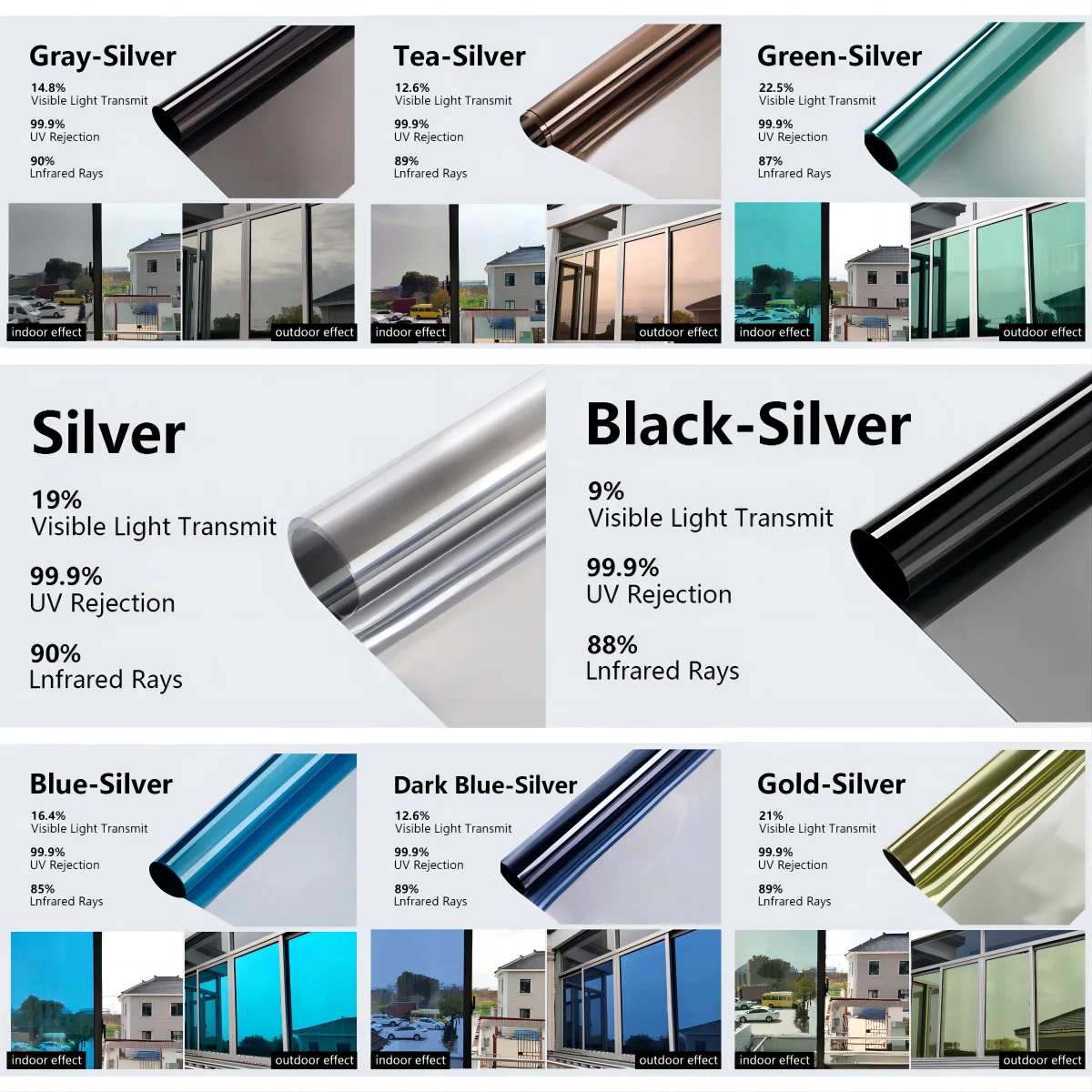 - Functions: Heat-proof / Water-proof / Obscure Privacy / UV-proof