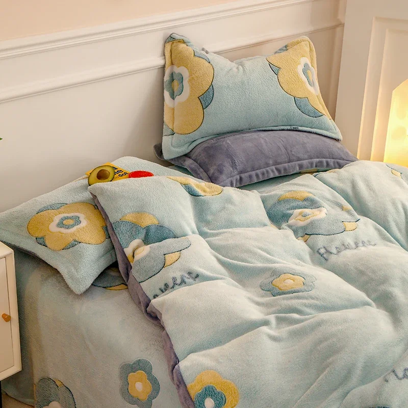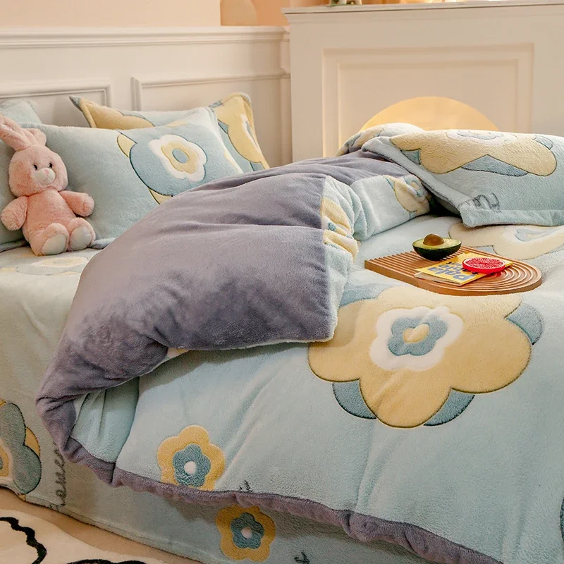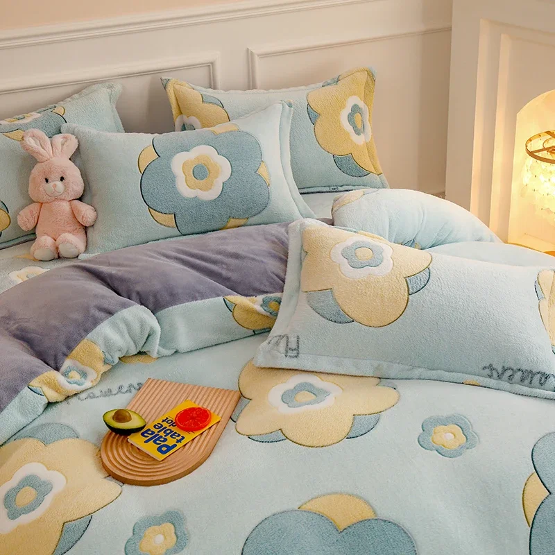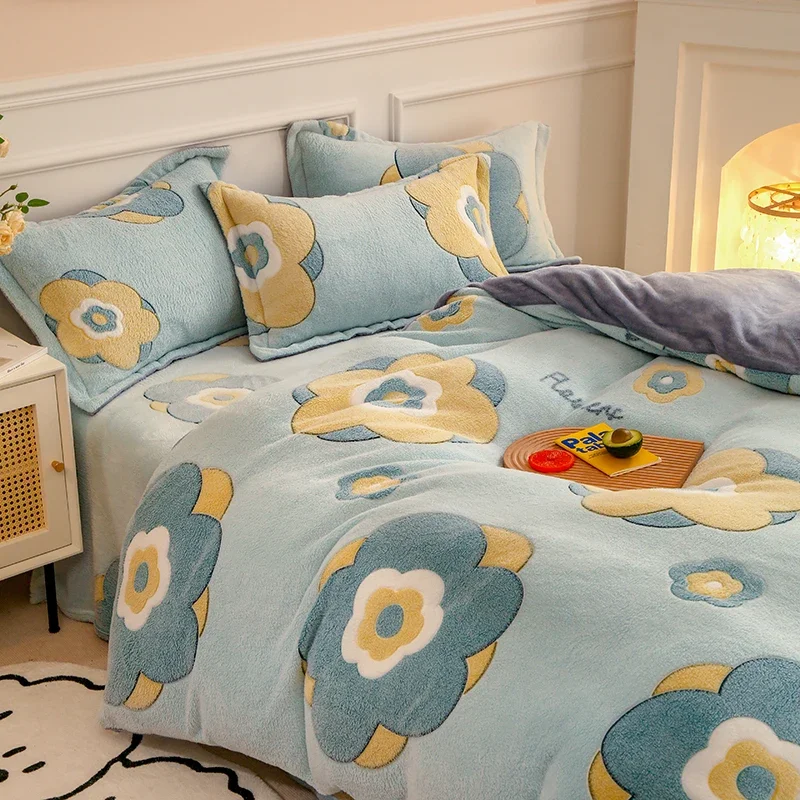 Winter Antistatic Thick Warm Duvet Cover Microfiber Quilt Cover Coral Fleece Queen King Size Double Sided Velvet Bedding Set