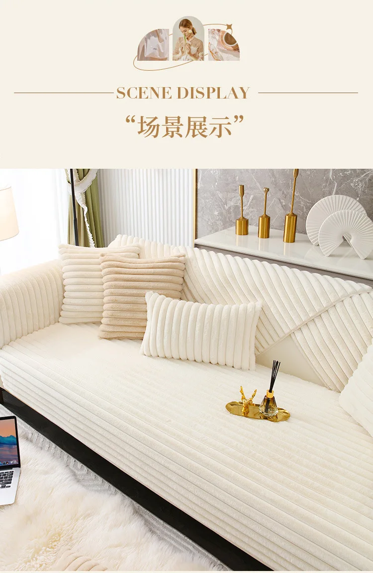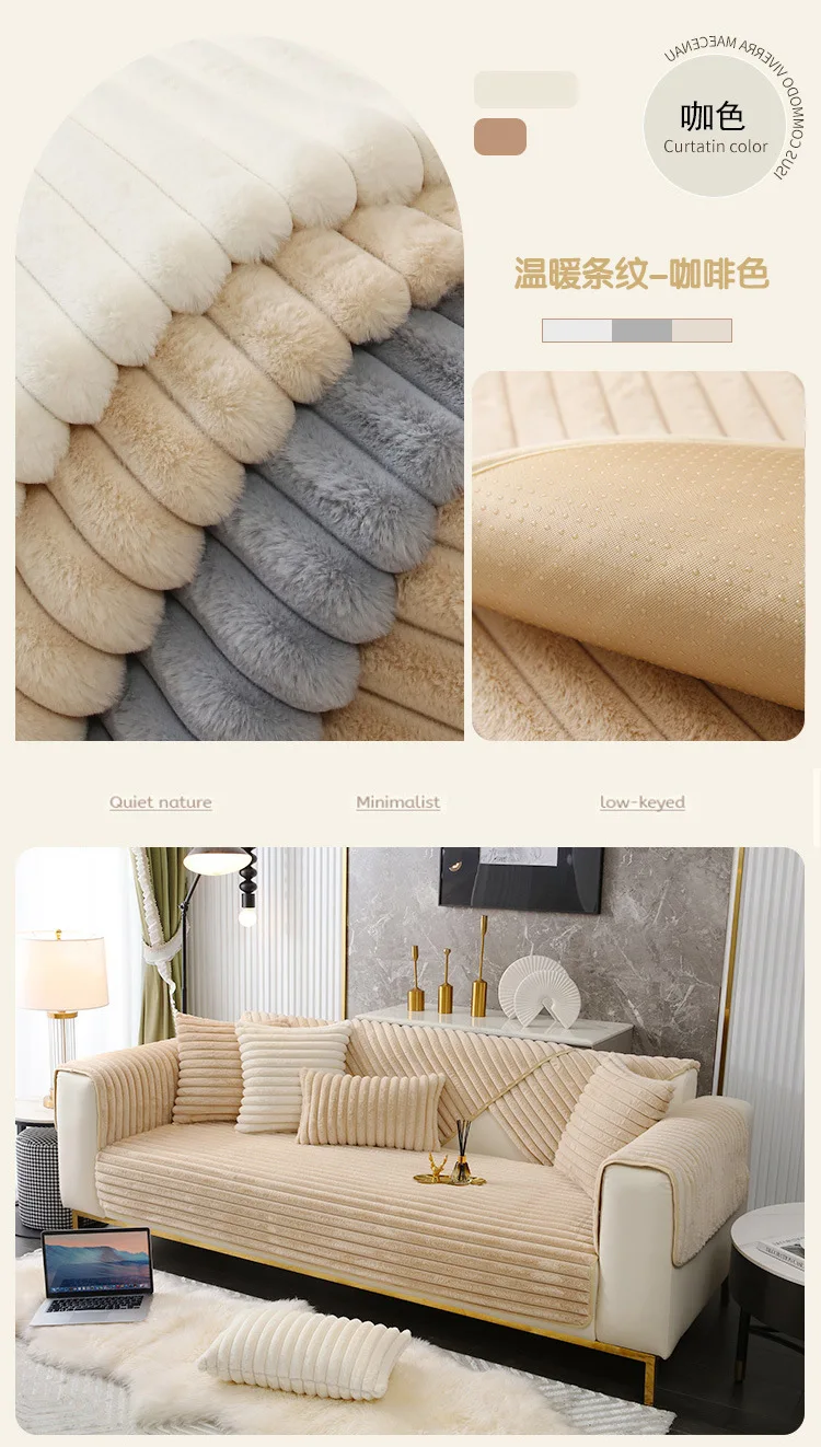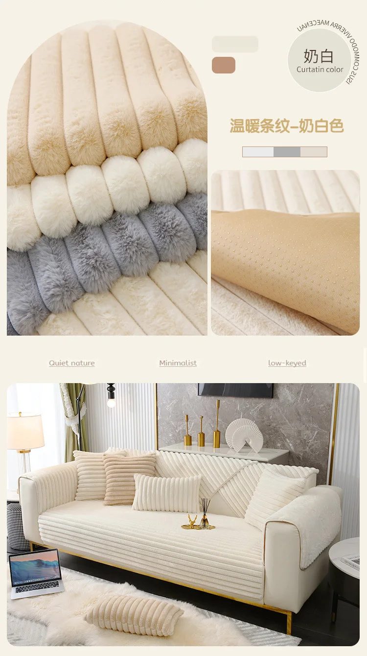 Winter Thick Faux Rabbit Fur Sofa Cover – Full Protection