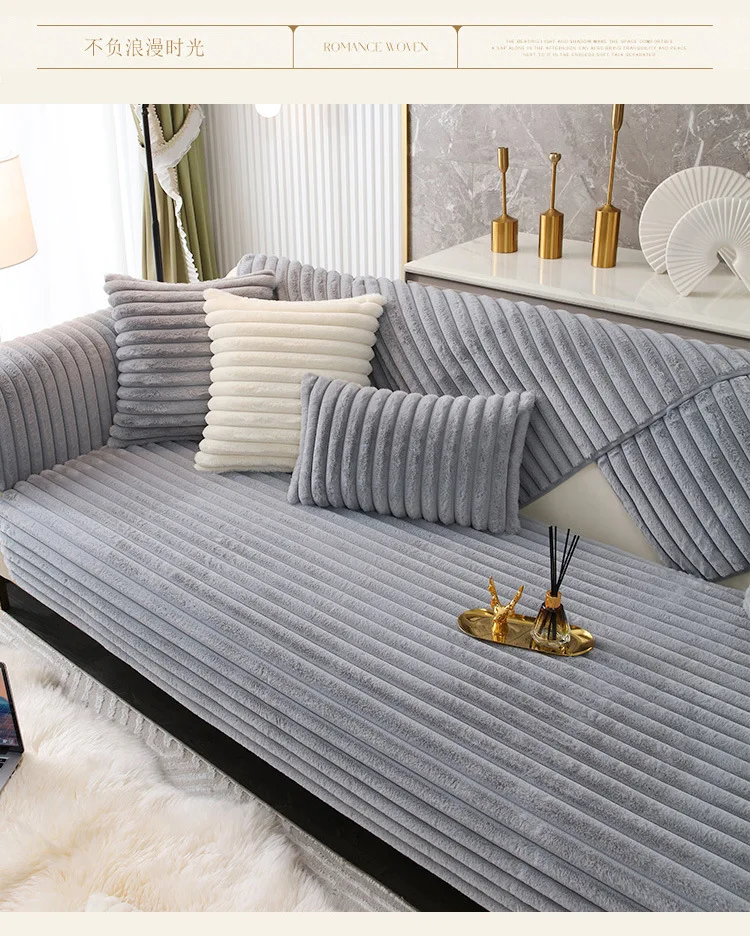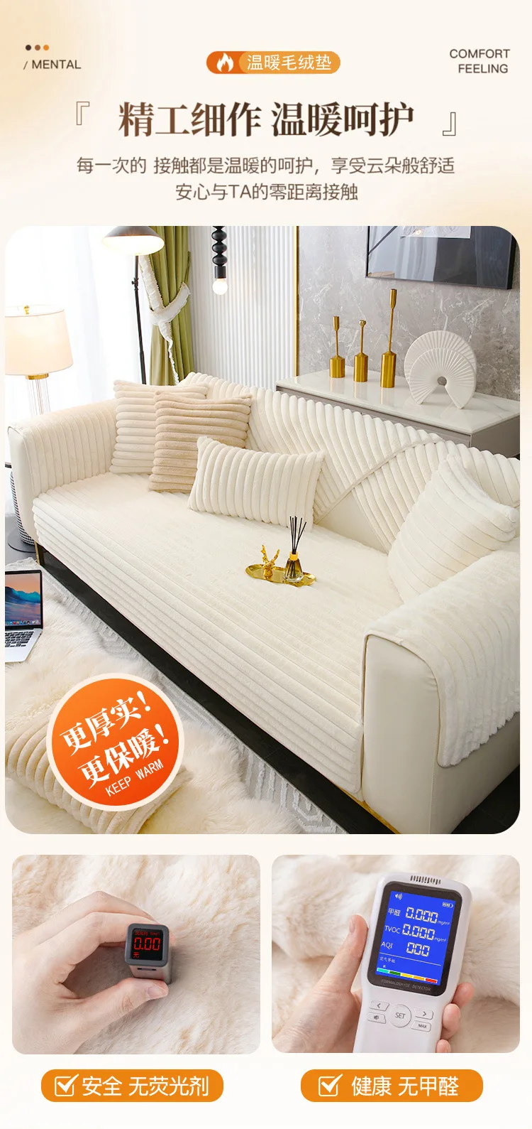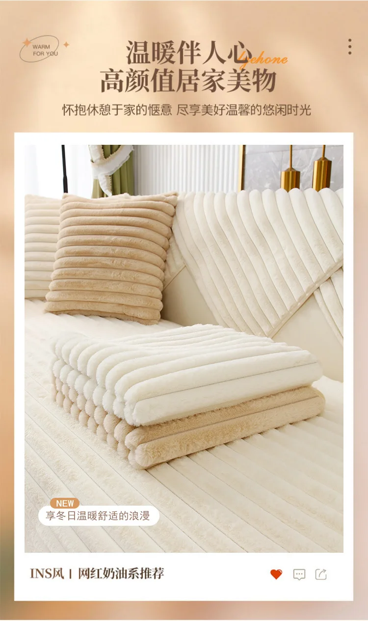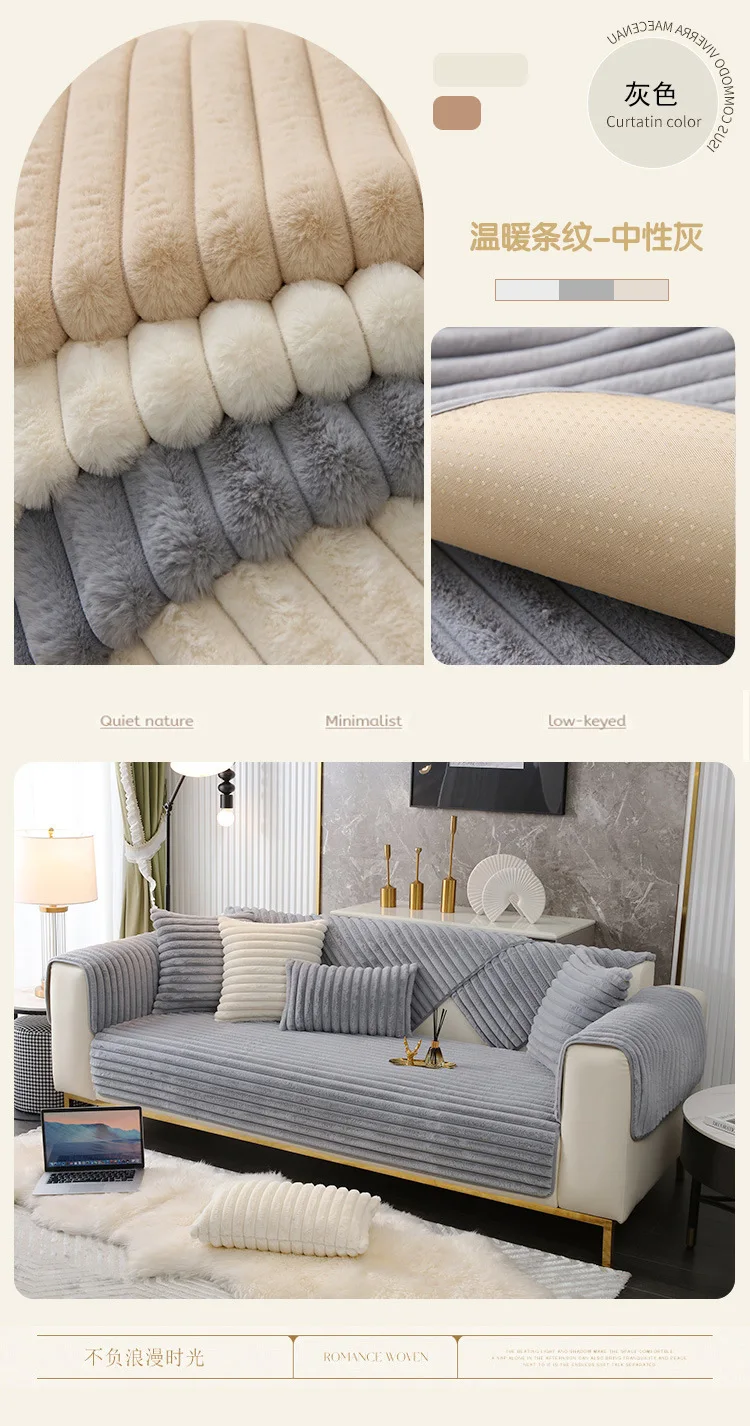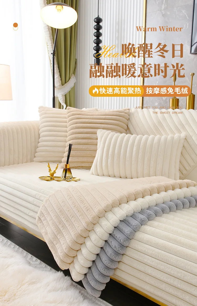 Winter thickened faux rabbit fur sofa cushion, warm seat pad, sofa slipcover for winter Towel Home Couch Decor