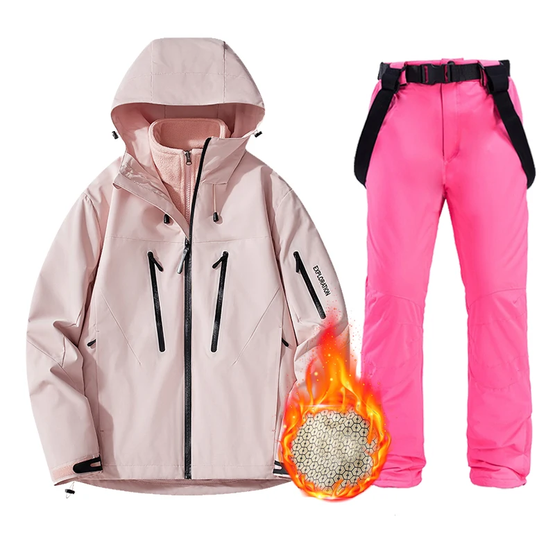 Winter Women’s Ski Suit Waterproof Snowboard 3 In 1 Set Jacket Pants Warm Snow Coat Mountain Windbreaker Female Ski Outfits