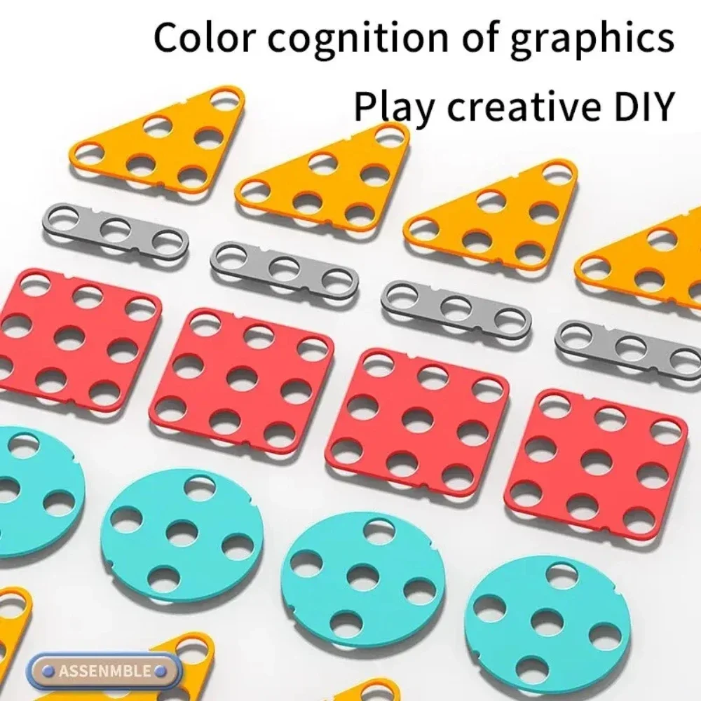 230-Piece Building Toy Set: The kids drill set includes colorful pieces (large nuts, bolts, etc), an electric drill with 2 different interchangeable bits, 1 wrench, 1 screwdriver, an instruction book with various patterns and a portable design storage case which is handy to keep everything together. Case also acts as a board for drilling. Easy to carry everywhere!! note:450 Pcs More cost-effective!!