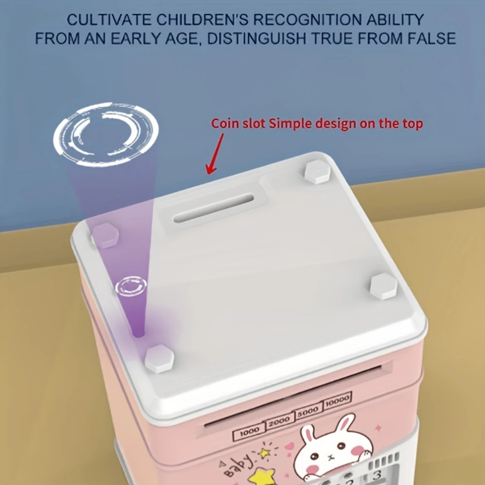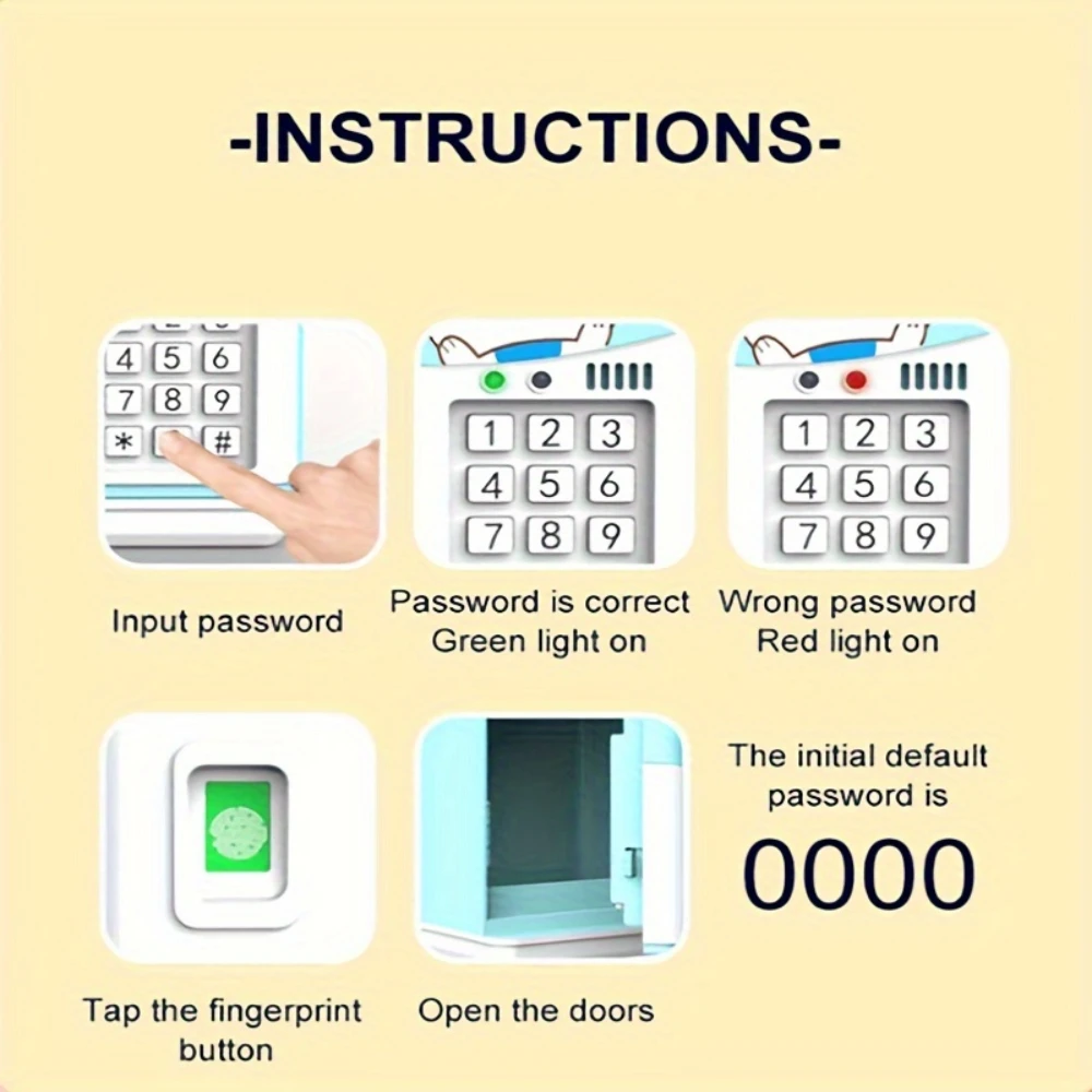 Wide use: It can be used to store toys, jewelry, baseball cards, etc. Insert coins into the top of the piggy bank and insert bills into the side, just use the safe as a piggy bank.Adults and children can all use it.