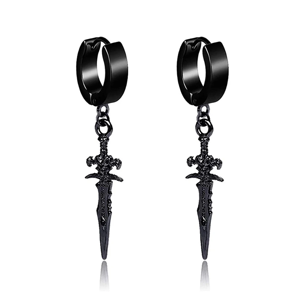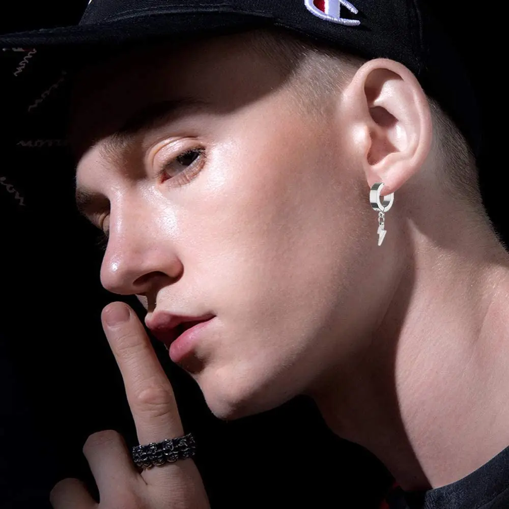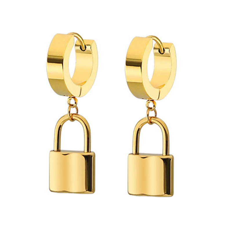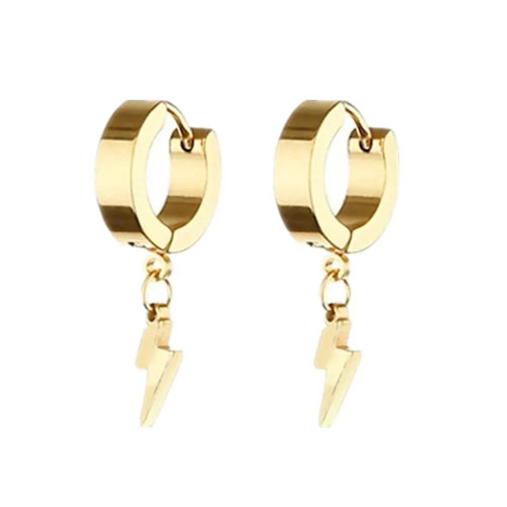 Unisex Punk Hip Hop Stainless Steel Lock Thunder Lightning Black Bolt Dangle Huggie Hoop Earrings For Women Men Boy Teens
