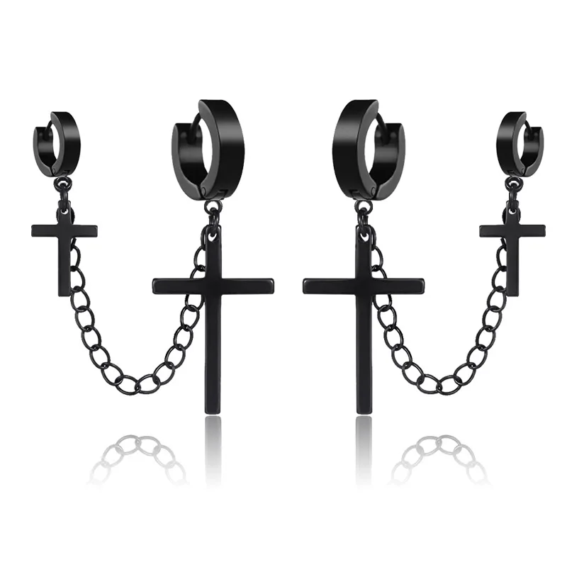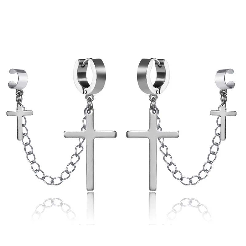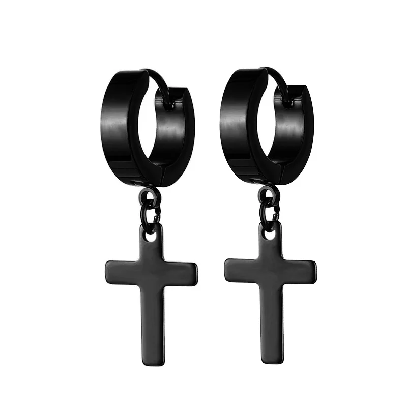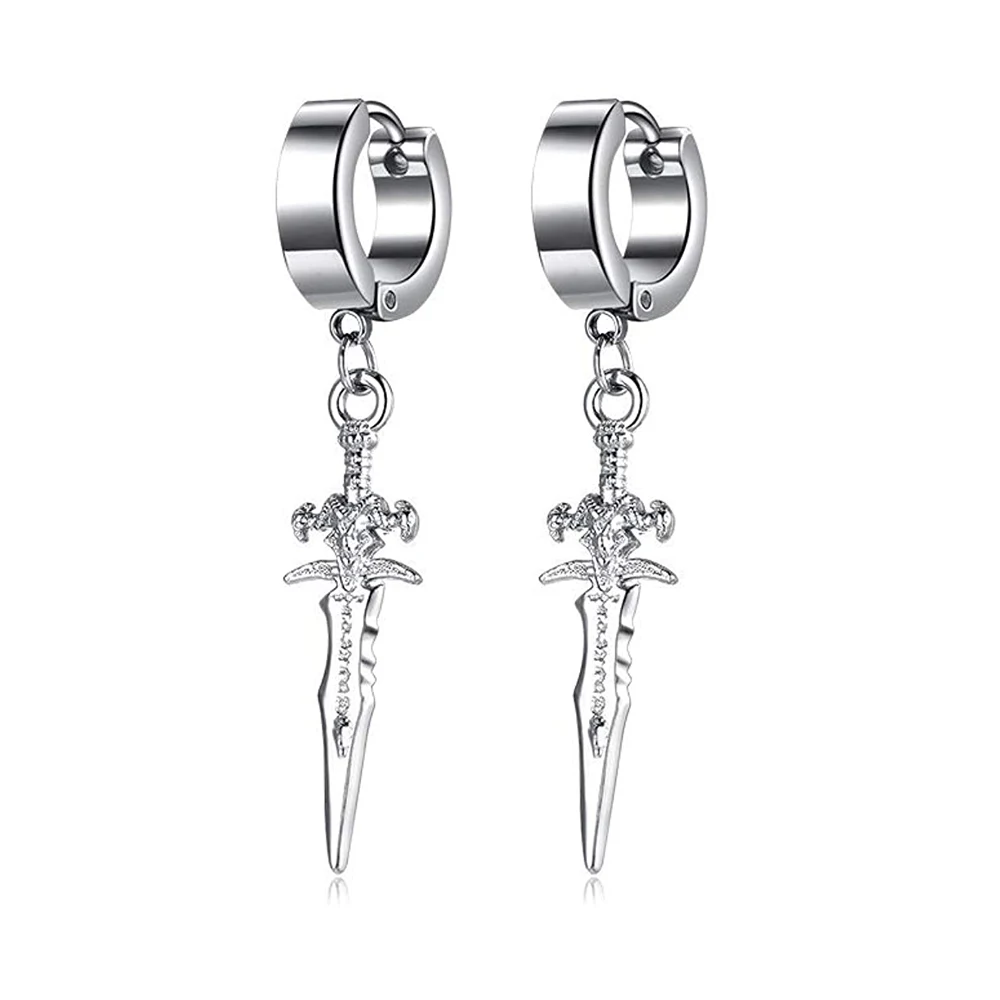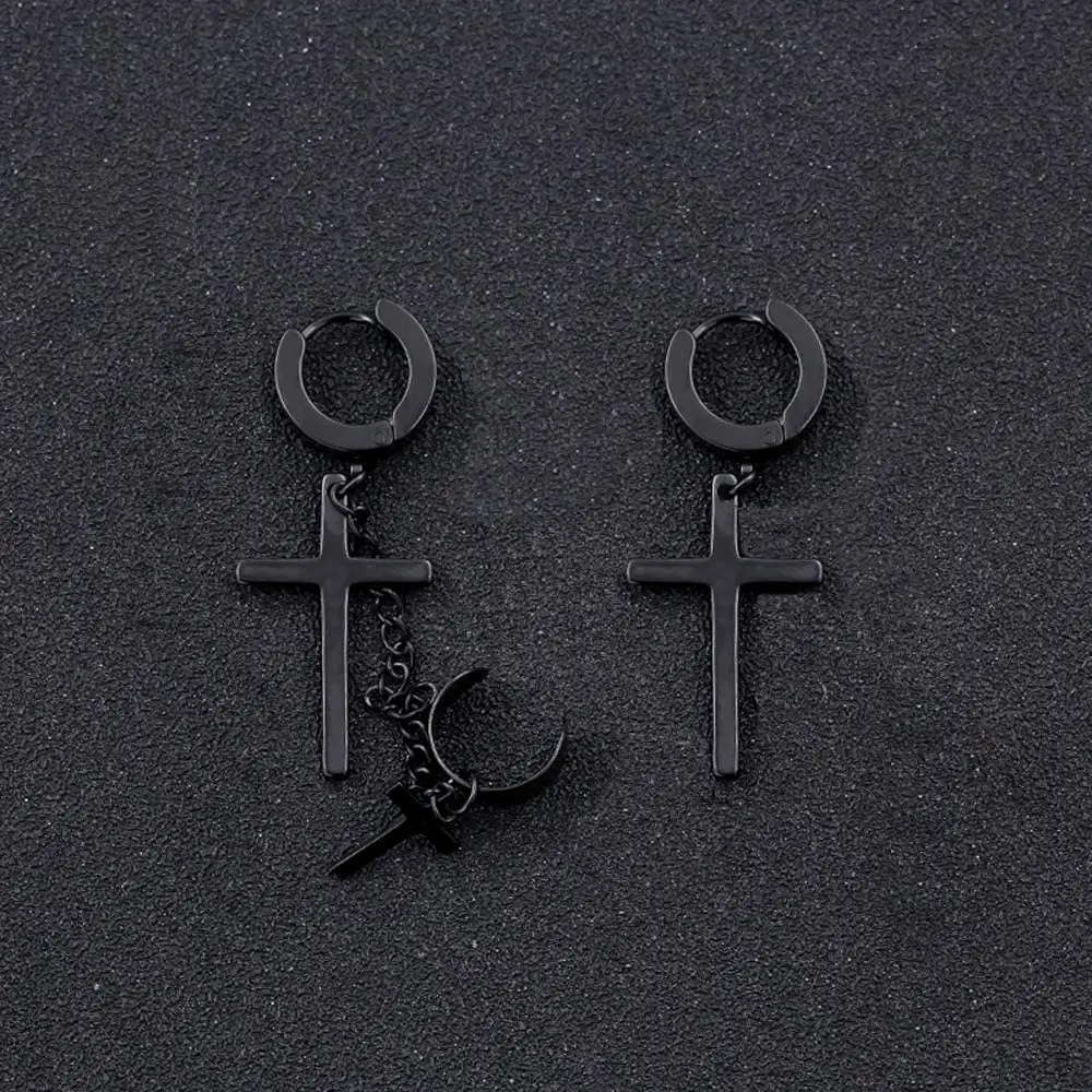 Unisex Punk Hip Hop Stainless Steel Lock Thunder Lightning Black Bolt Dangle Huggie Hoop Earrings For Women Men Boy Teens