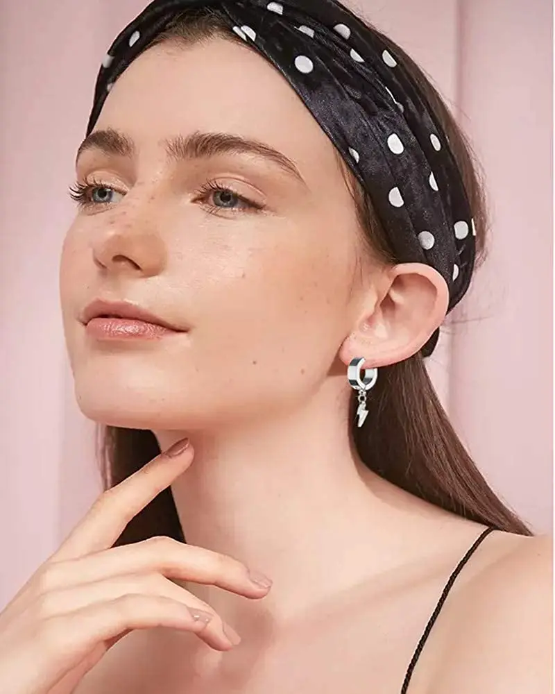 WKOUD Unisex Punk Hip Hop Stainless Steel Lock Thunder Lightning Black Bolt Dangle Huggie Hoop Earrings For Women Men Boy Teens