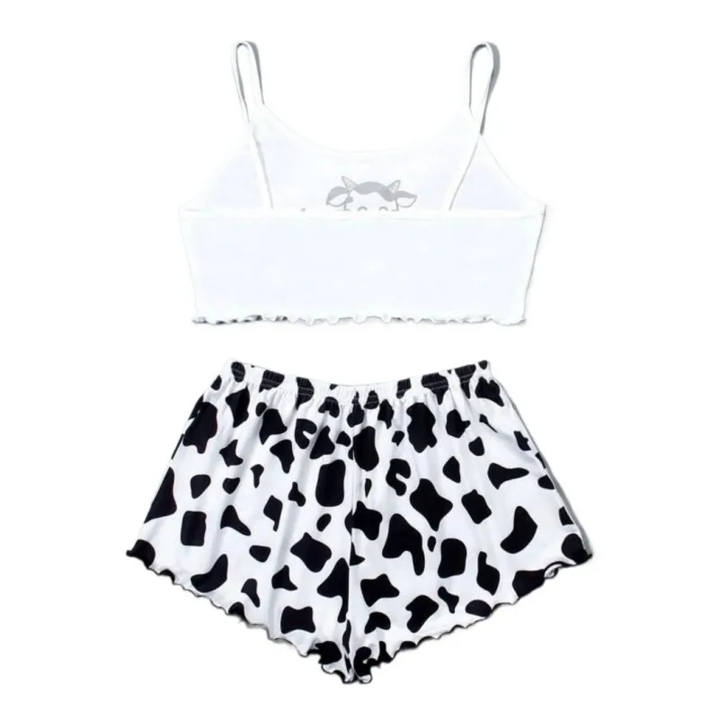 Women 2 Pieces Pajamas Set Cute Cow Print Sleeveless Top and Shorts Sleepwear Casual Homewear Loungewear Pijamas