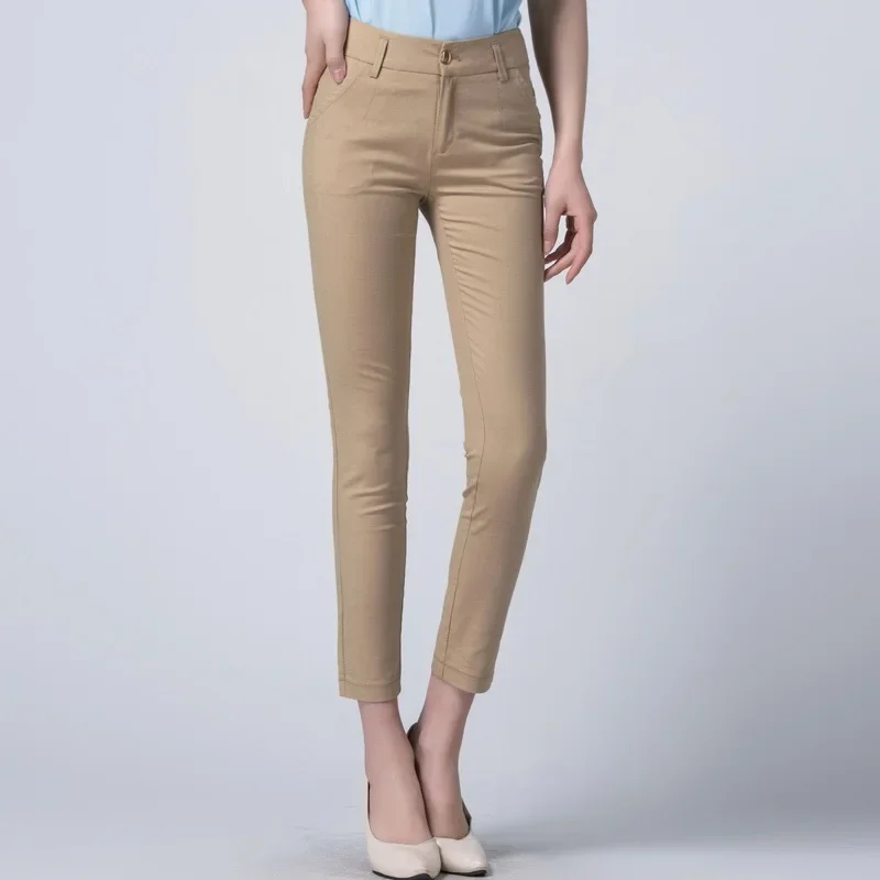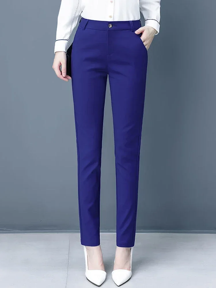 Women Casual Big Size 4xl Korean Office Pantalones High Waist Pencil Pants New Formal Slim OL Candy Color Ankle-length Spodnie
