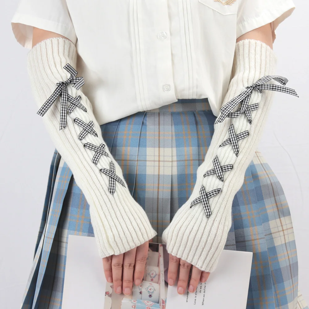Women Knitted Arm Warmers Long Fingerless Gloves Winter Gothic Lolita Sweet Arm Sleeve Girls Y2K Classic Soft Mitten
