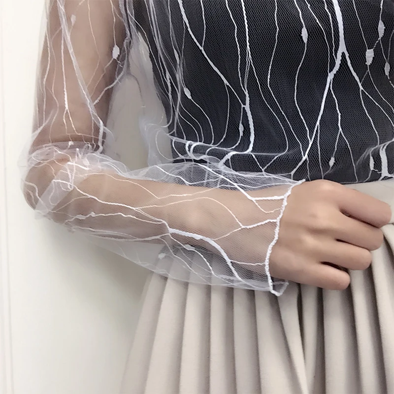 Women Fashion T-Shirts Mesh Sheer Party Long Sleeve Blouses T-Shirt Ladies Tops