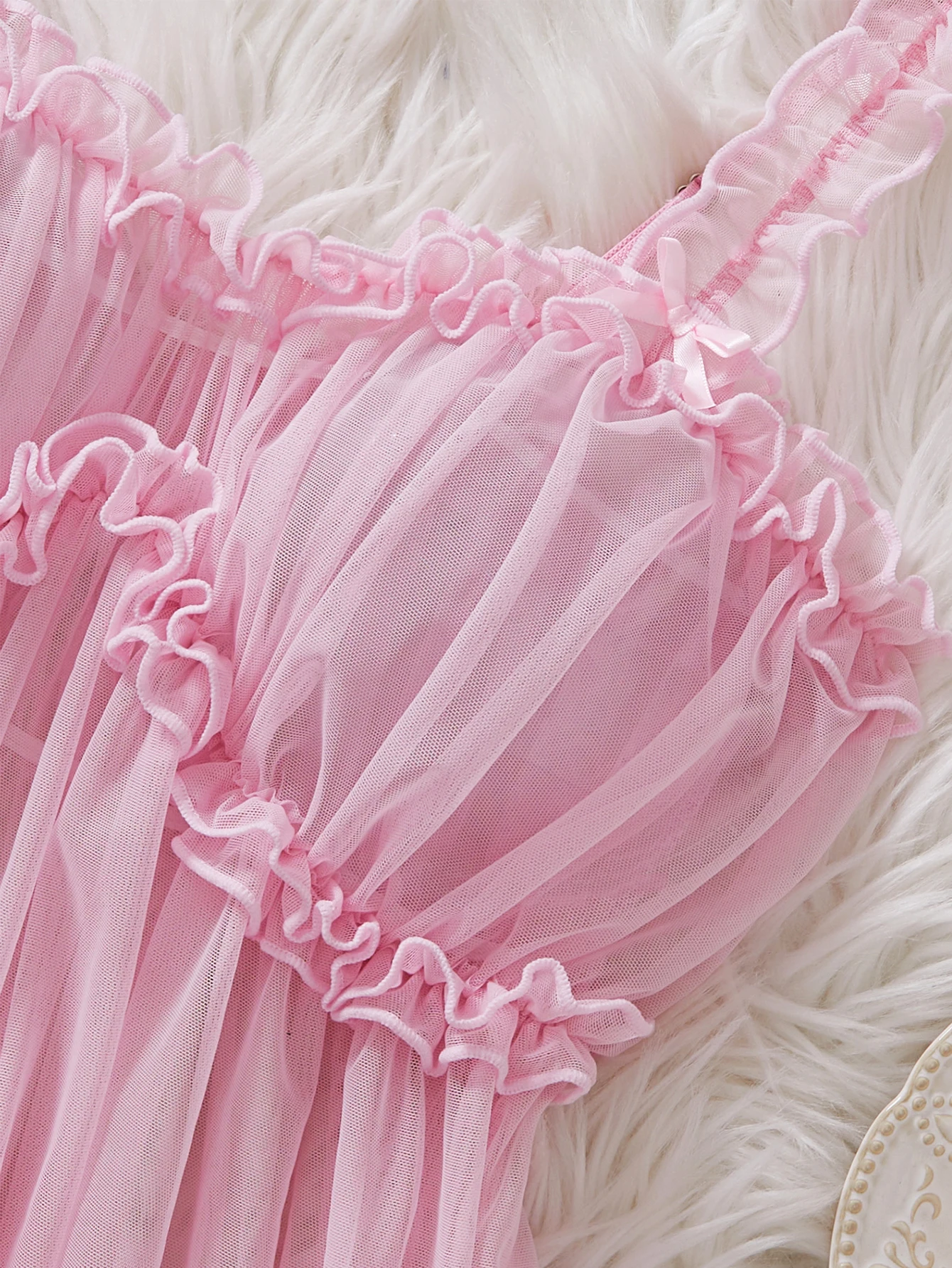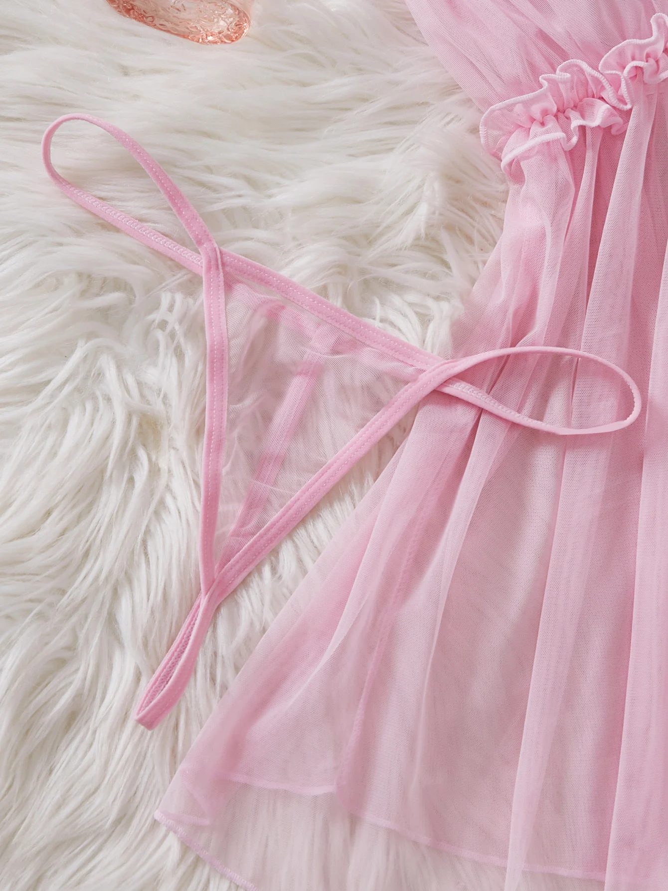 1 review for Women Perspective Mesh Nightdress Bow Wrapped Around Chest Pink Sexy Babydoll With Thong Erotic Sexy Lingerie Valentine Day Gift